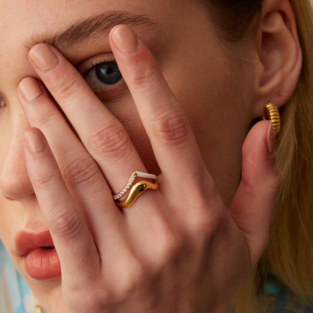 Nuestro anillo Abstract se convertirá en un must en tus combinaciones de anillos favoritas.