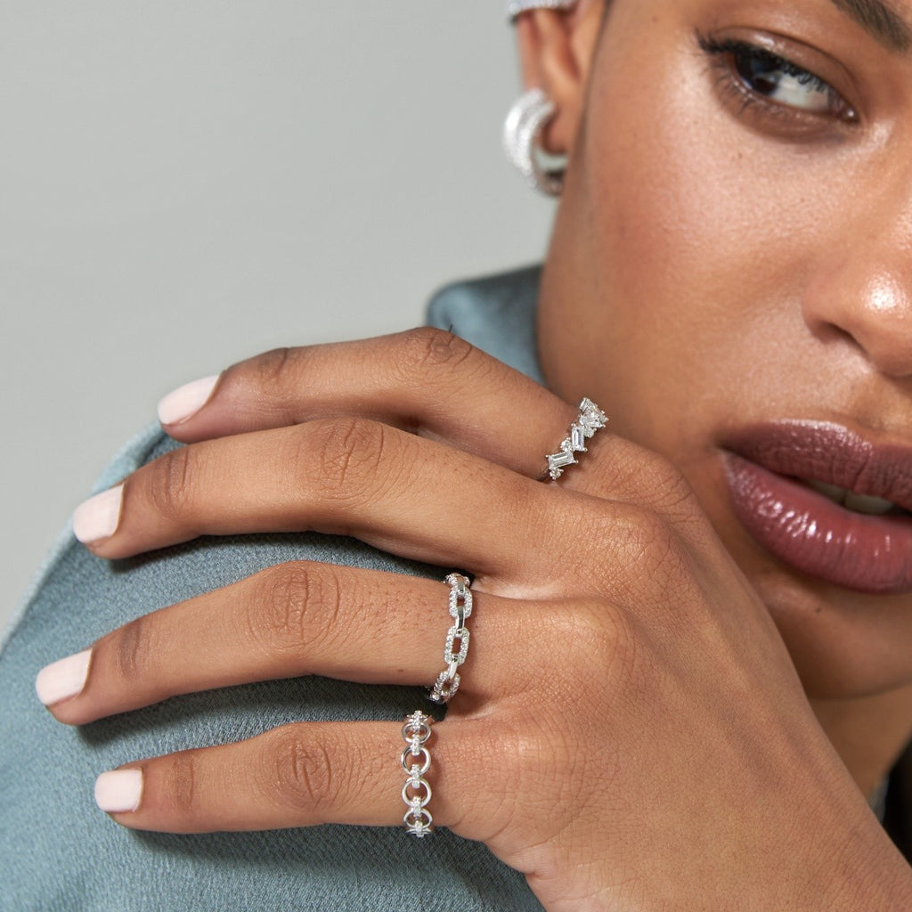 ¡Ya sabes que los anillos de eslabones de cadena son la última tendencia en joyería!