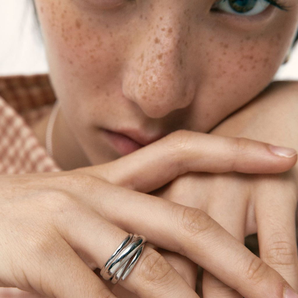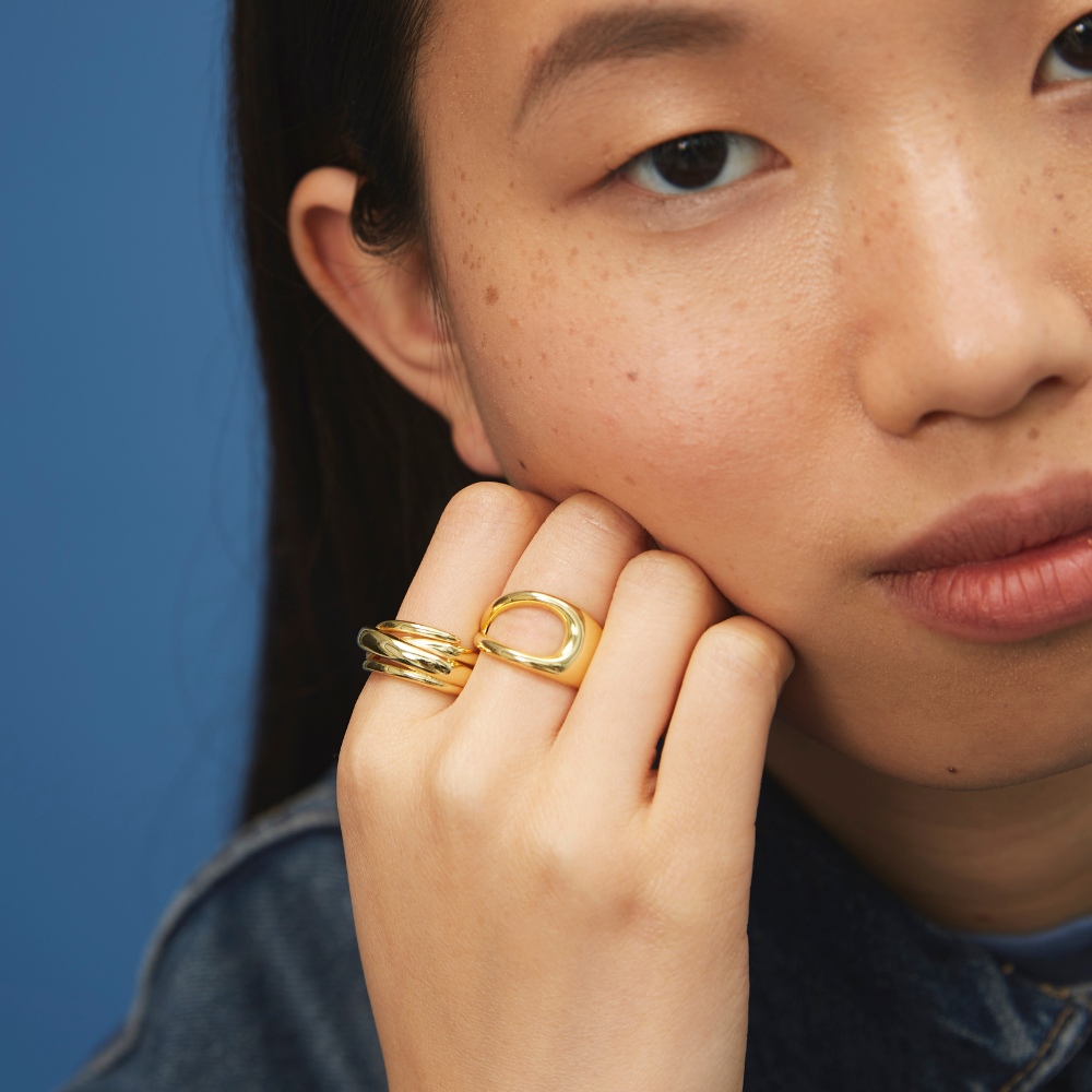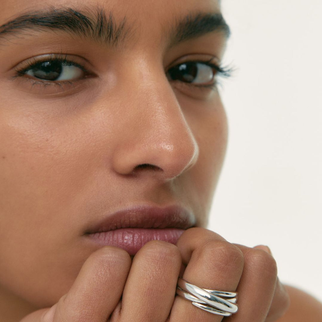 ¿Echas en falta un poco de brillo? Entonces te encantará combinar tu nuevo anillo Obalka con otras joyas con circonitas, tales como el anillo Classic o el collar Iris.