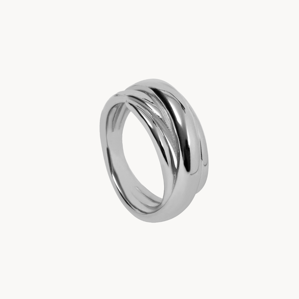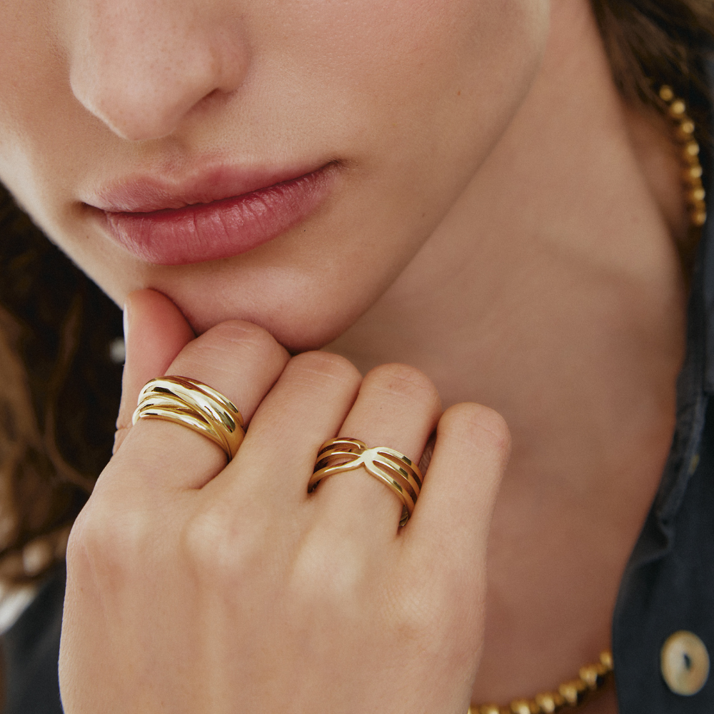 Obalka es un anillo liso minimalista con un diseño que simula el entrelazado de la joya.