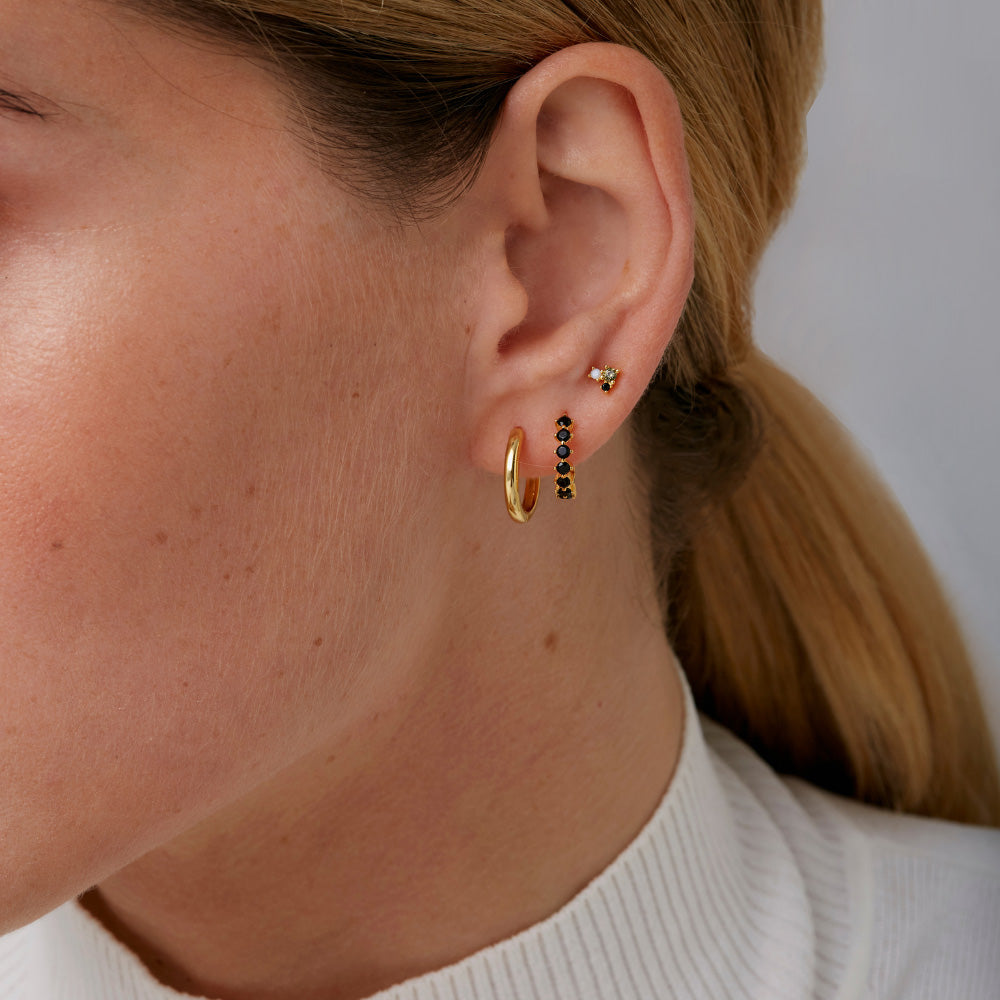 Combina los aros Black Temsa con otros pendientes de colores  para un total look coloridos o con pendientes lisos de oro para un look más invernal y elegante. Disponible acabados en Oro y Plata.