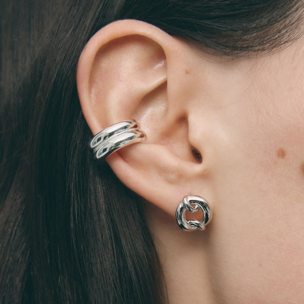 Estos sofisticados pendientes de aro dorados destacan por su diseño entrelazado, que combina elegancia y modernidad.