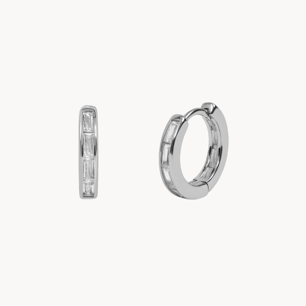 Ela son unos finos aros con pequeñas circonitas blancas en ambas caras. Si buscas darle un toque especial a tus combinaciones de pendientes, los aros Ela serán tu mejor opción.
