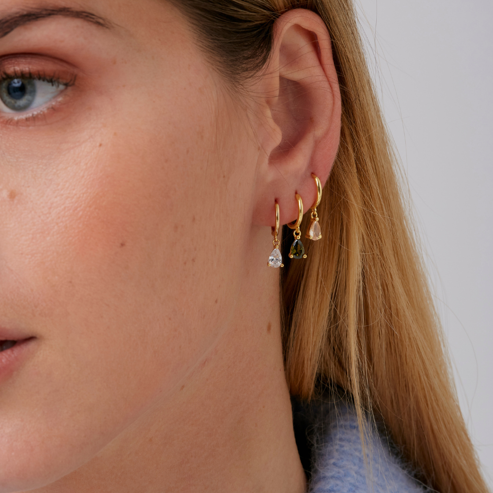 Hedy son unos aros minimalistas con una lágrima de circonita blanca. Ideales para llevarlos a diario o en eventos más especiales.