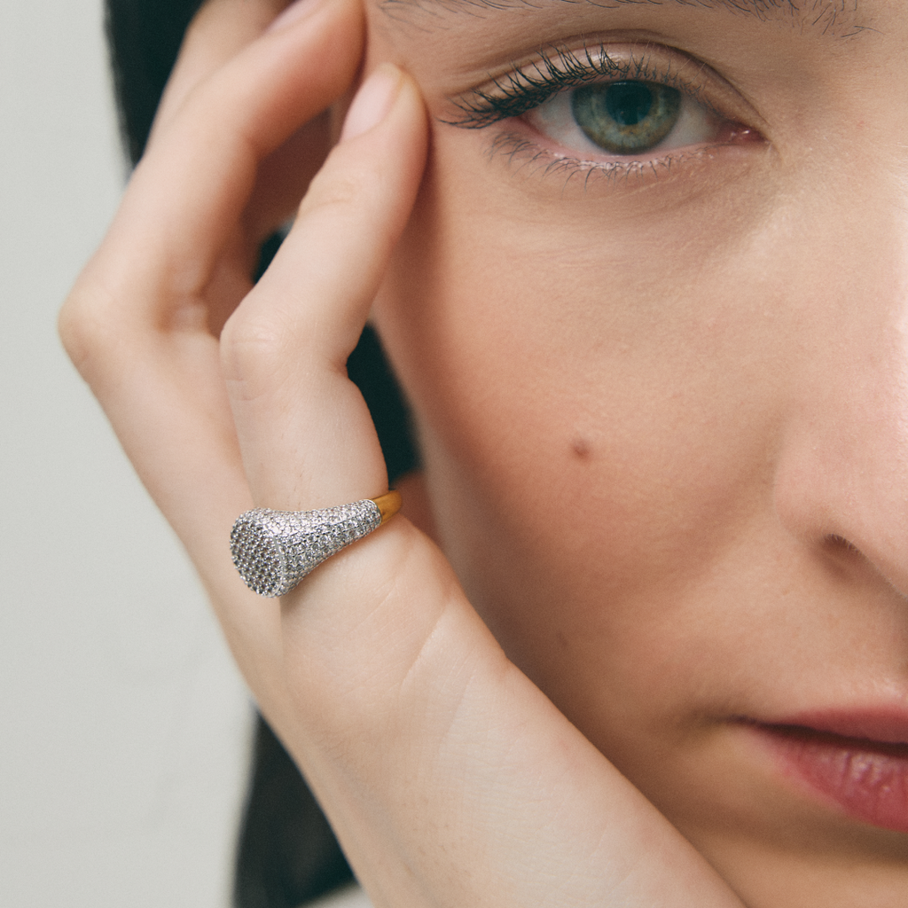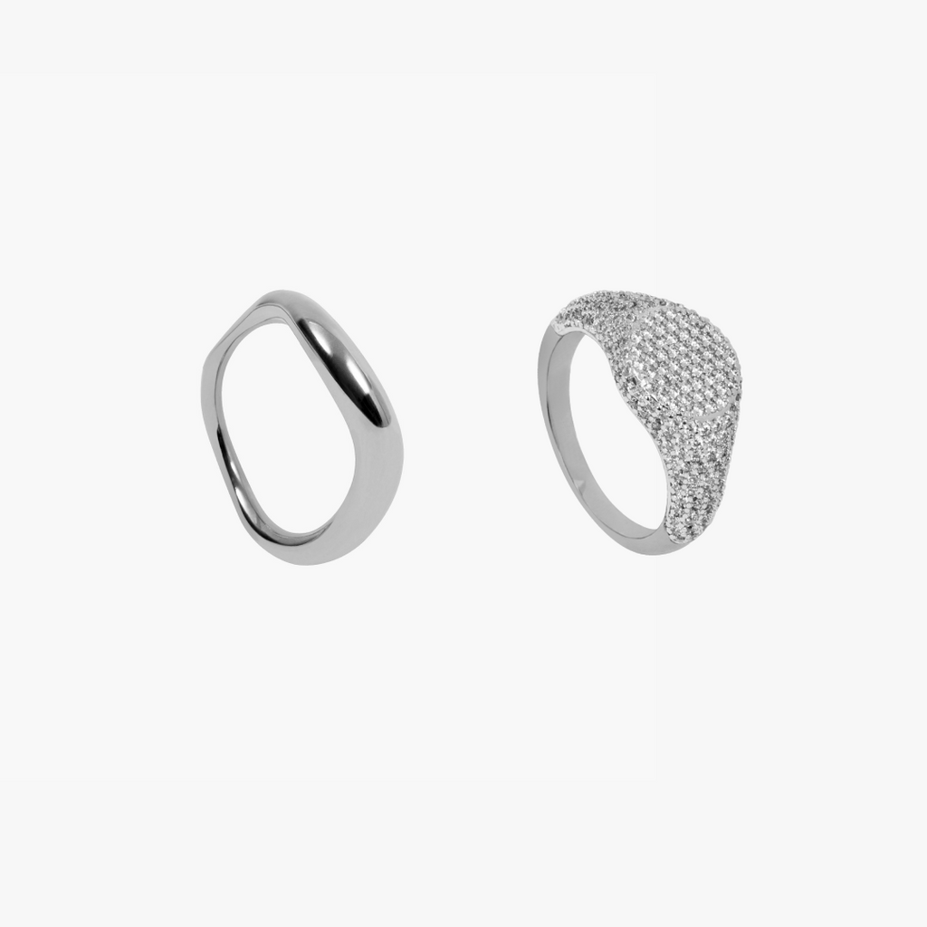 El pack Cima + Boreal Signet combina dos piezas icónicas de By Lia: la pureza de las formas fluidas y la fuerza luminosa del pavé.