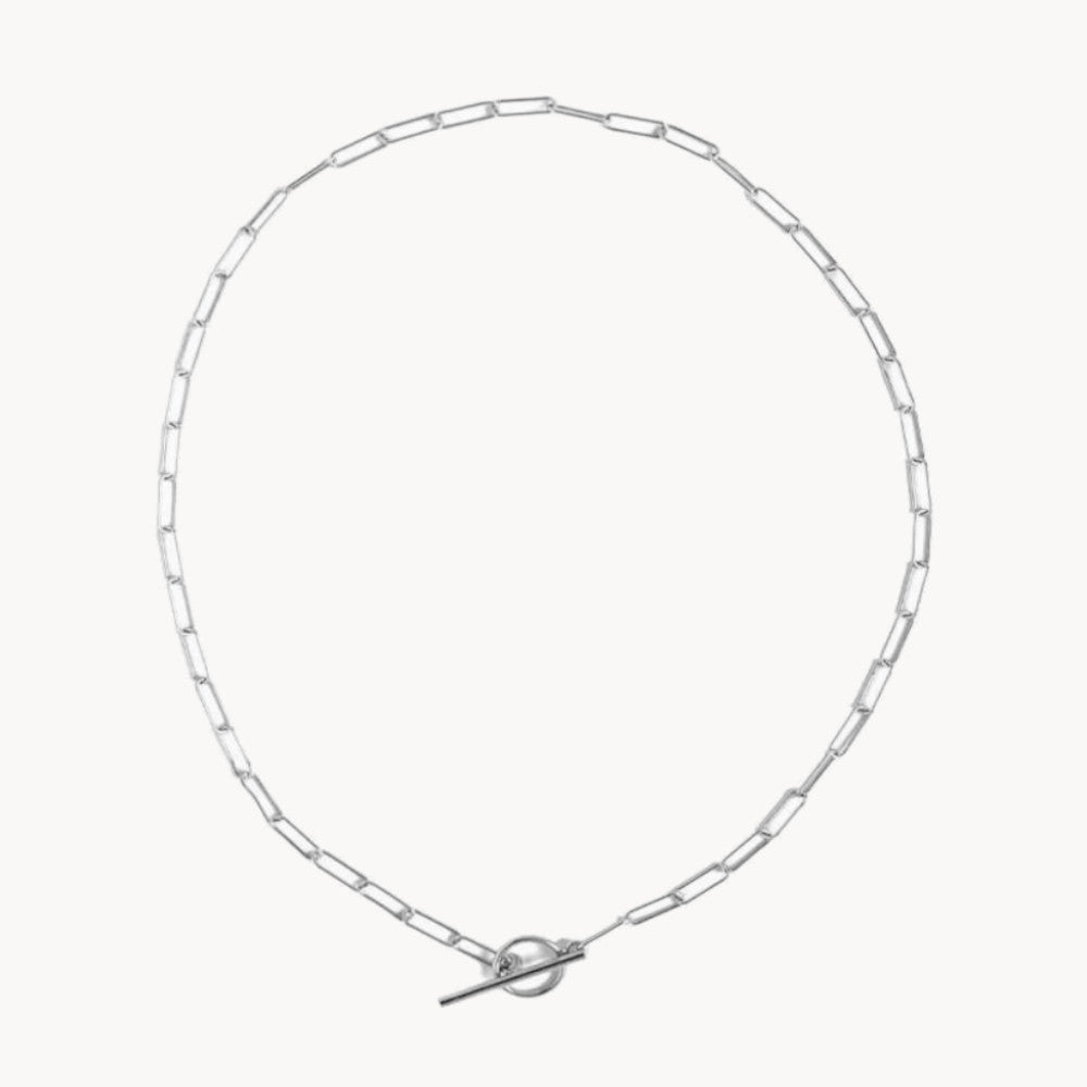 Eclipse es un collar, gargantilla de cadena de eslabones rectangulares  con un cierre marinero en forma de T.
