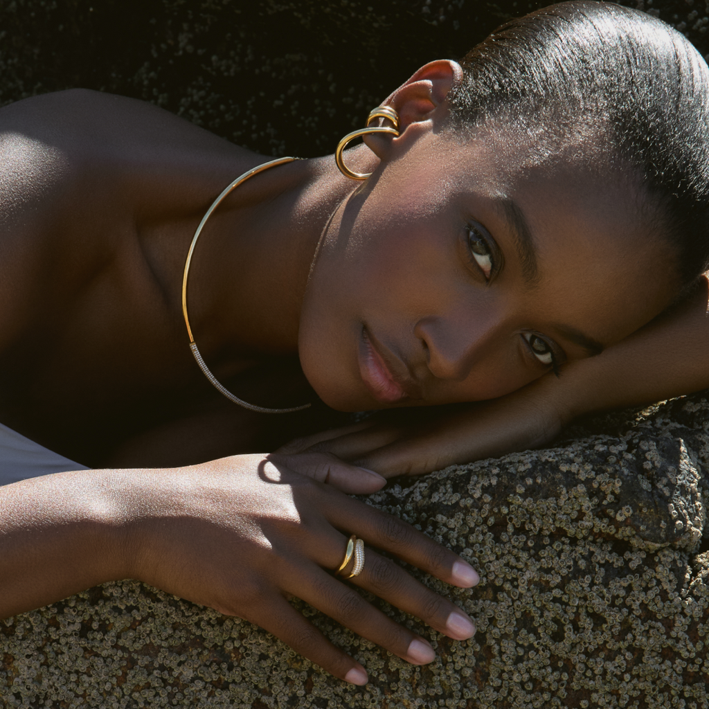 Inspirada en la armonía de la luz y la sombra, los diseños en pavé representan momentos de claridad, alineación y resplandor interior.