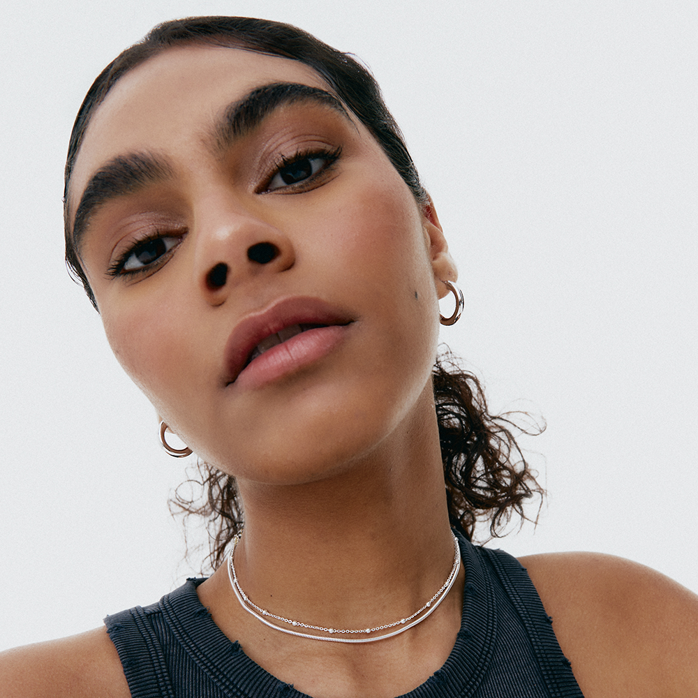 Si lo tuyo son los layering looks, atrévete a conjuntarla con otras cadenas de diferentes medidas, tal como la lleva nuestra modelo.