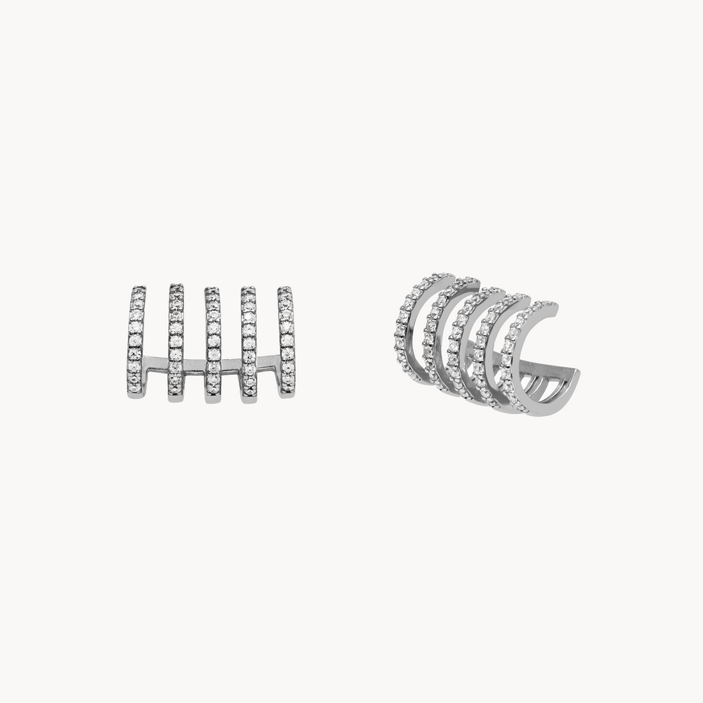 Sus delicadas varillas adornadas con circonitas crean un patron visualmente atractivo, aportando un aire moderno y sofisticado.