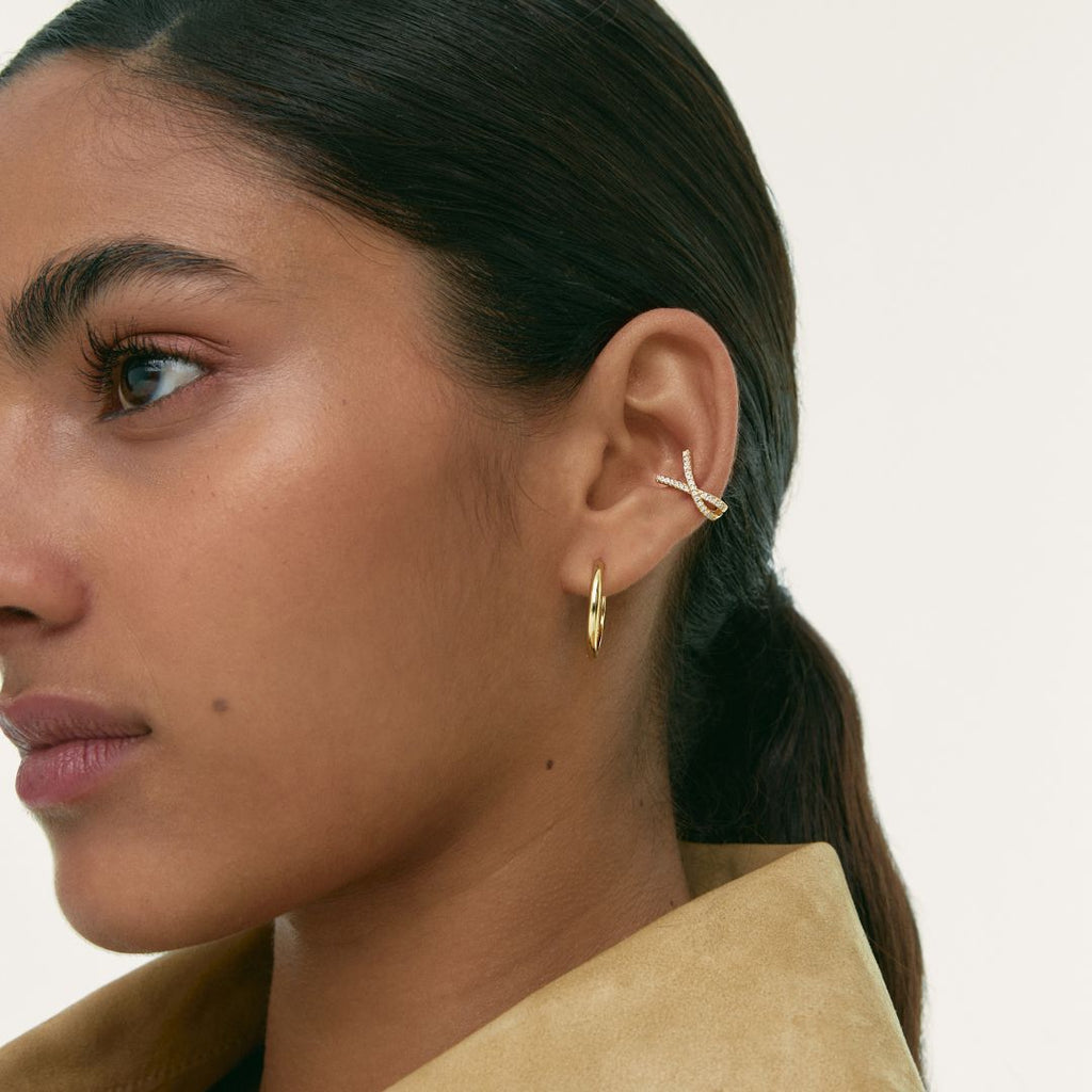 Verne es un pendiente tipo ear cuff doble cruzado recubierto de circonitas blancas.