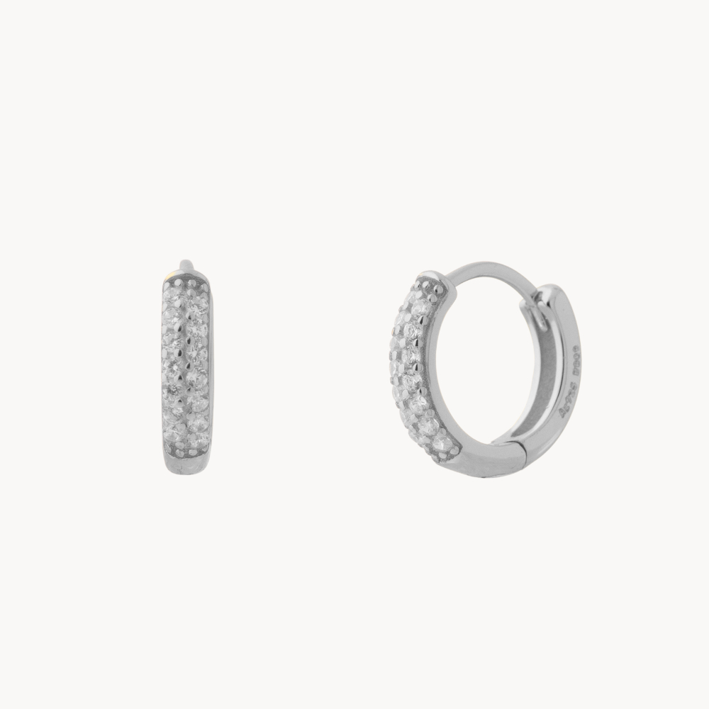 Aritos con dos hileras de circonitas pavé que darán un brillo extra a tus combos. Ideales para segundo y tercer agujero y todas las perforaciones en tu cartílago