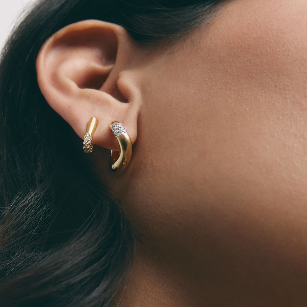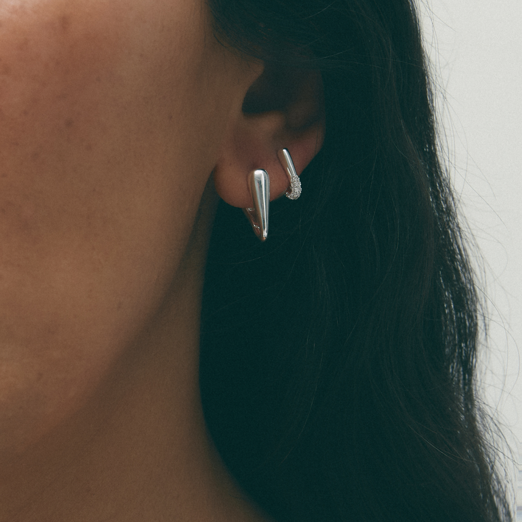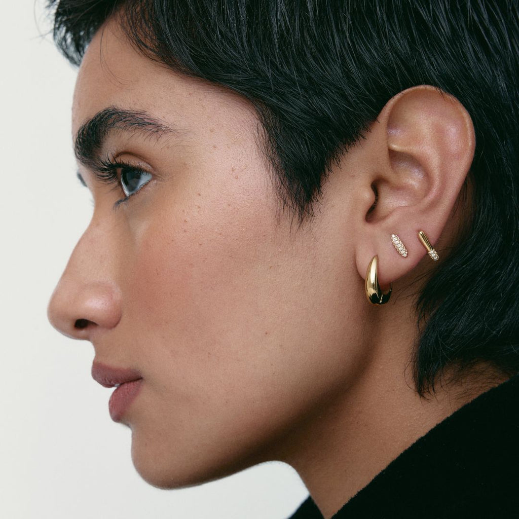 Los aros Half Solstice presentan una forma triangular sofisticada, con circonitas engarzadas en la punta para crear un punto de luz.