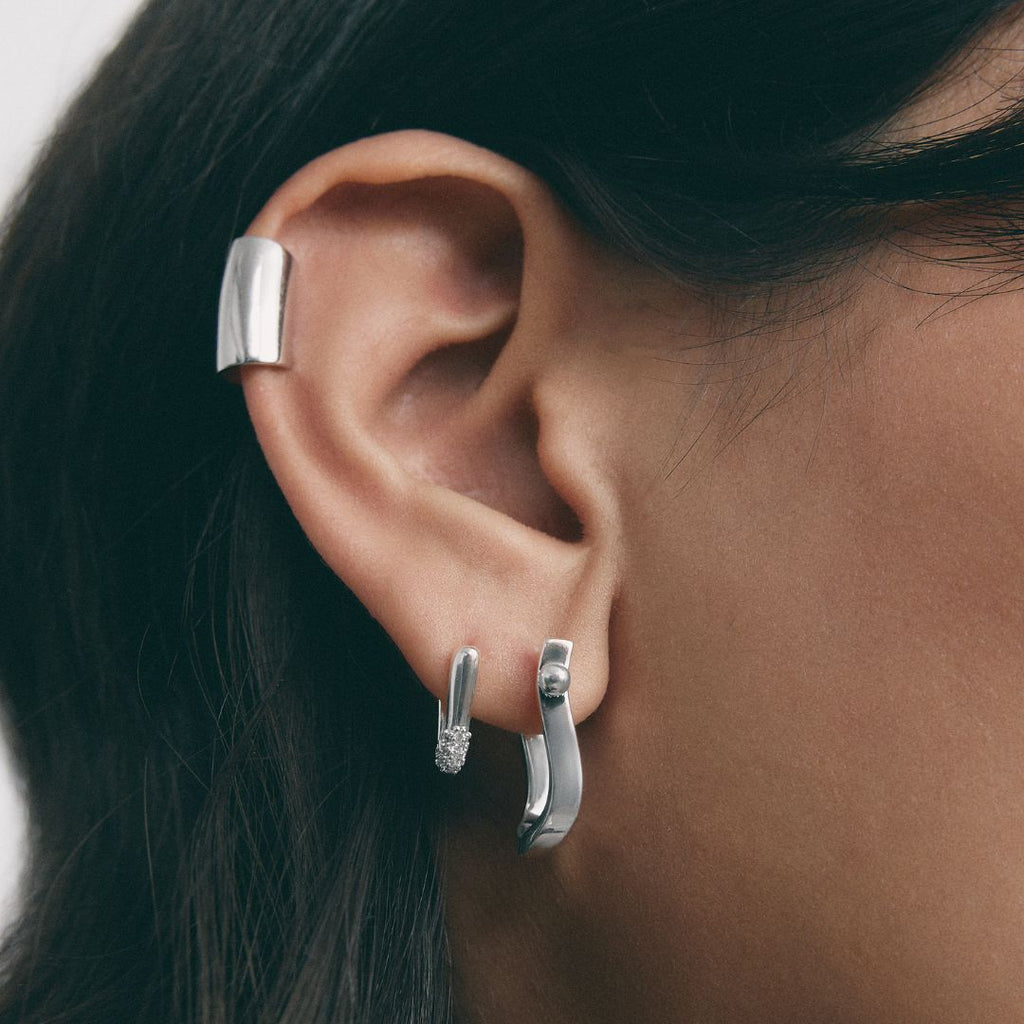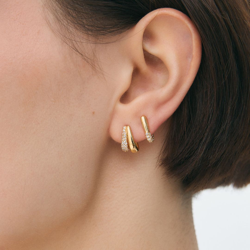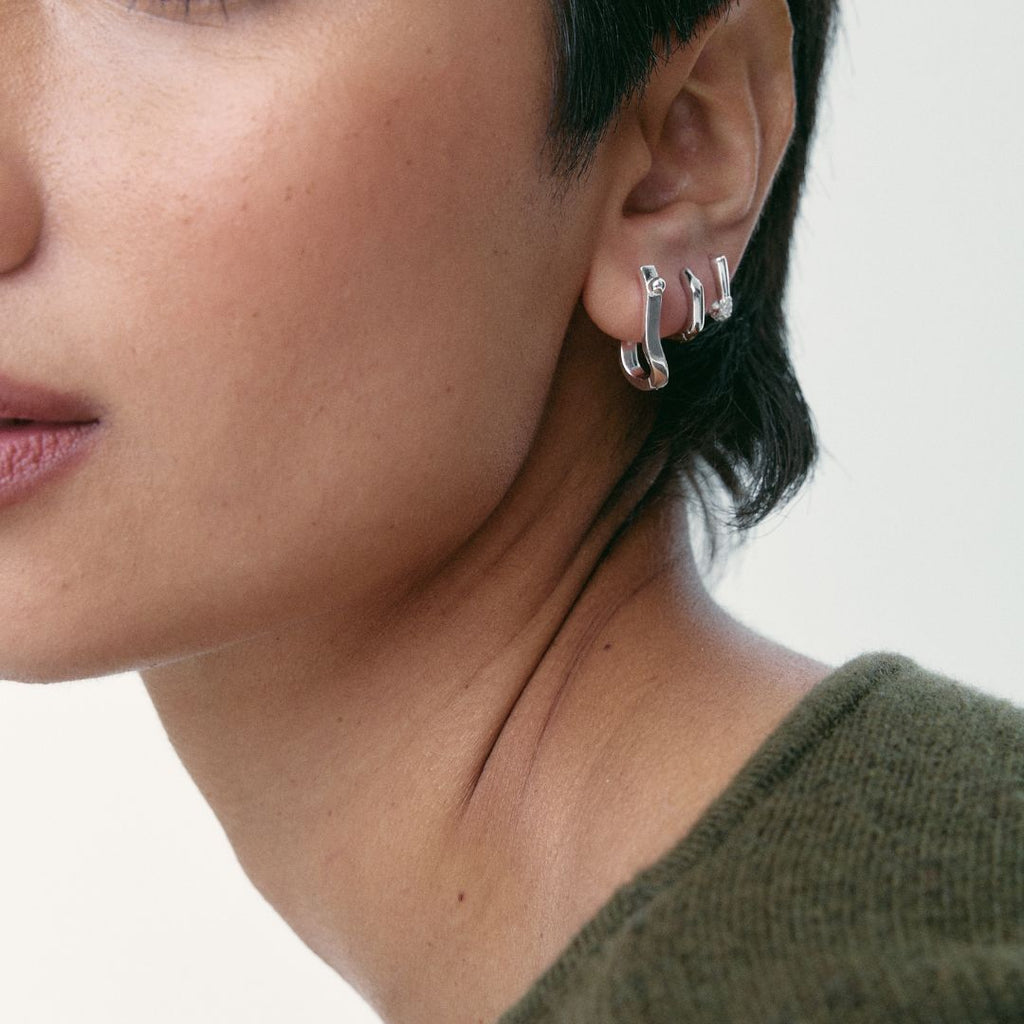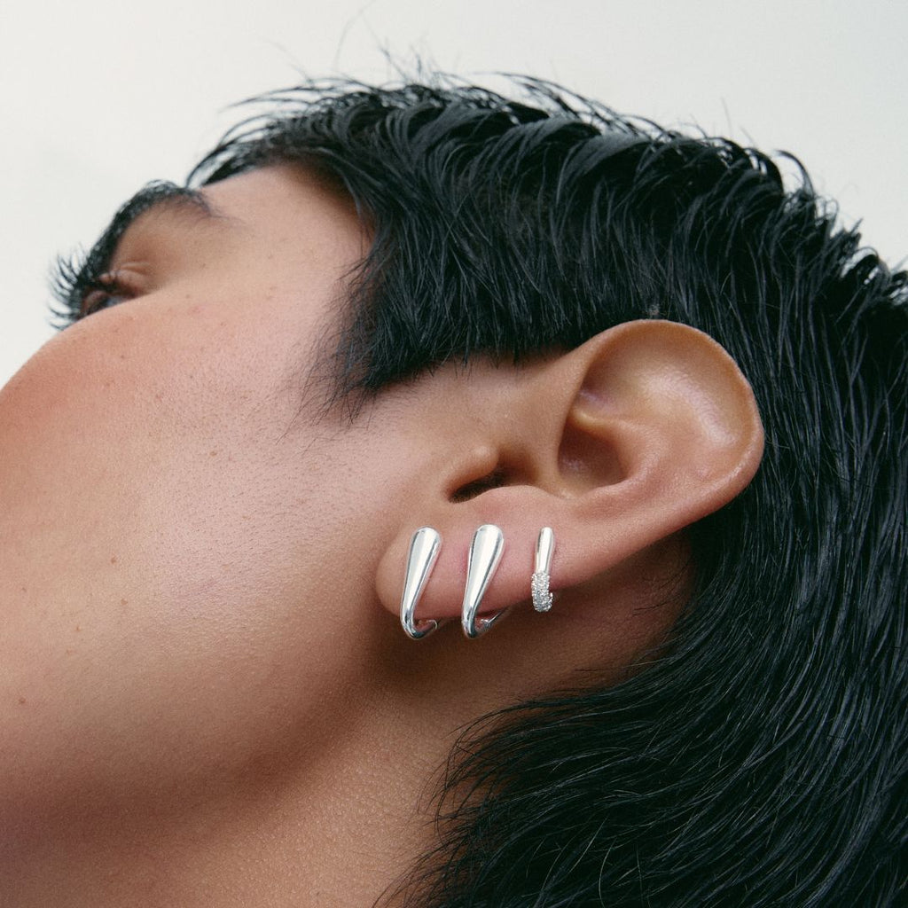 Los aros Half Solstice presentan una forma triangular sofisticada, con circonitas engarzadas en la punta para crear un punto de luz.