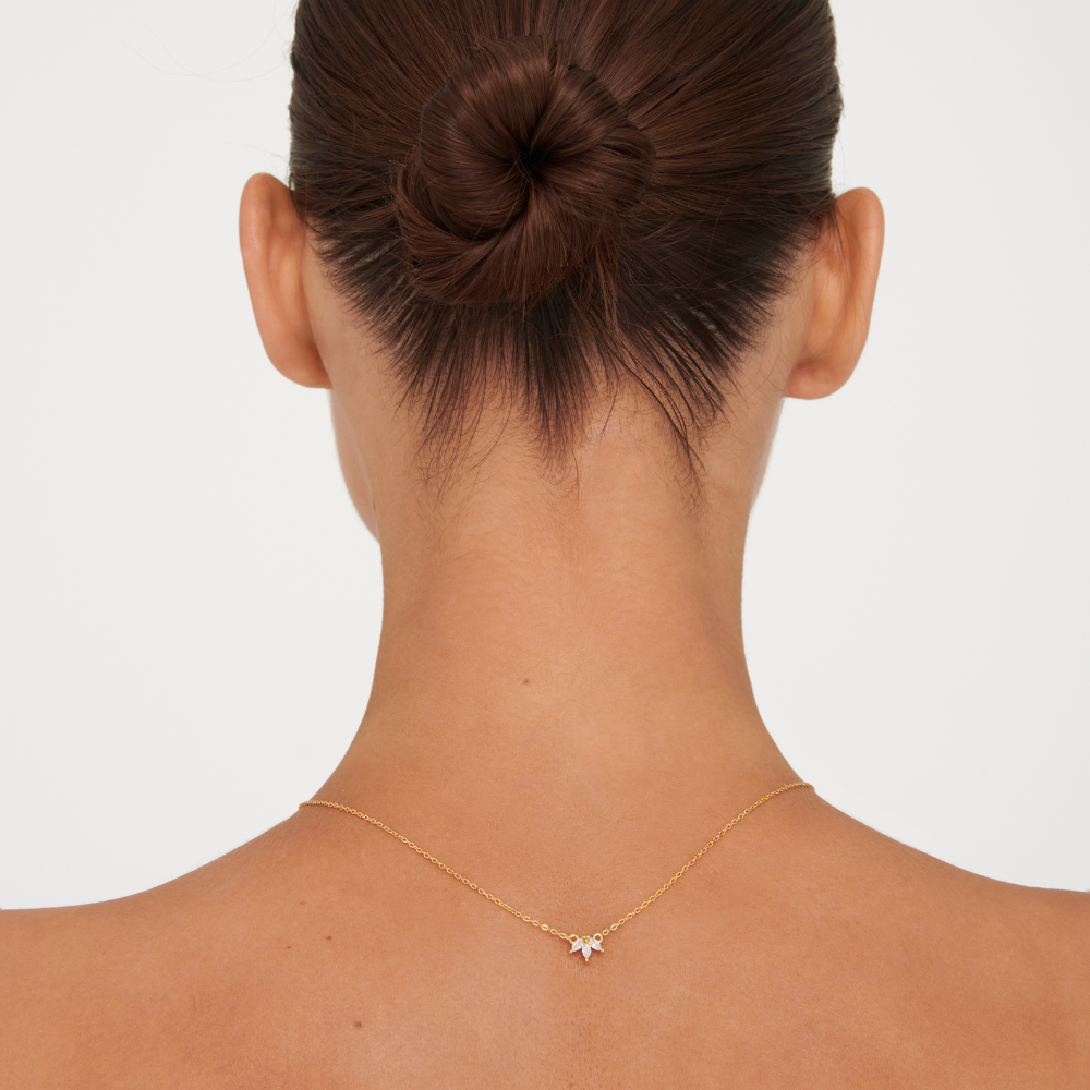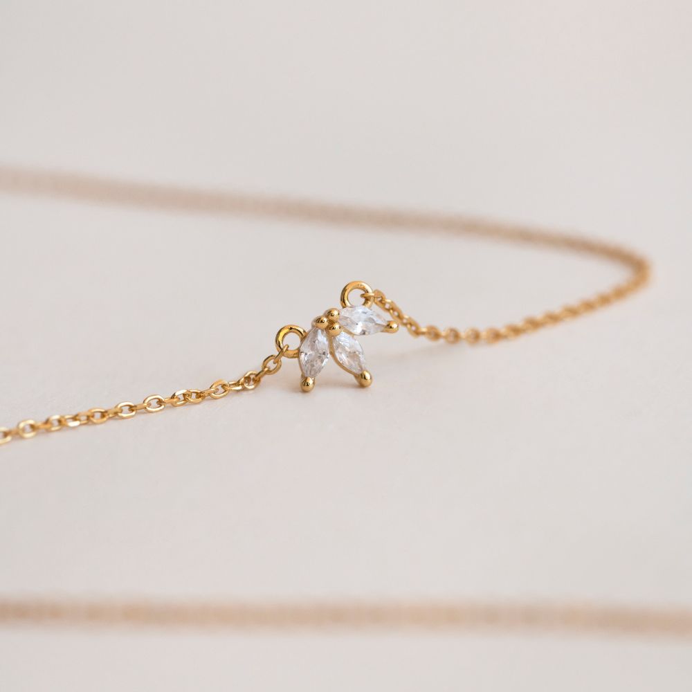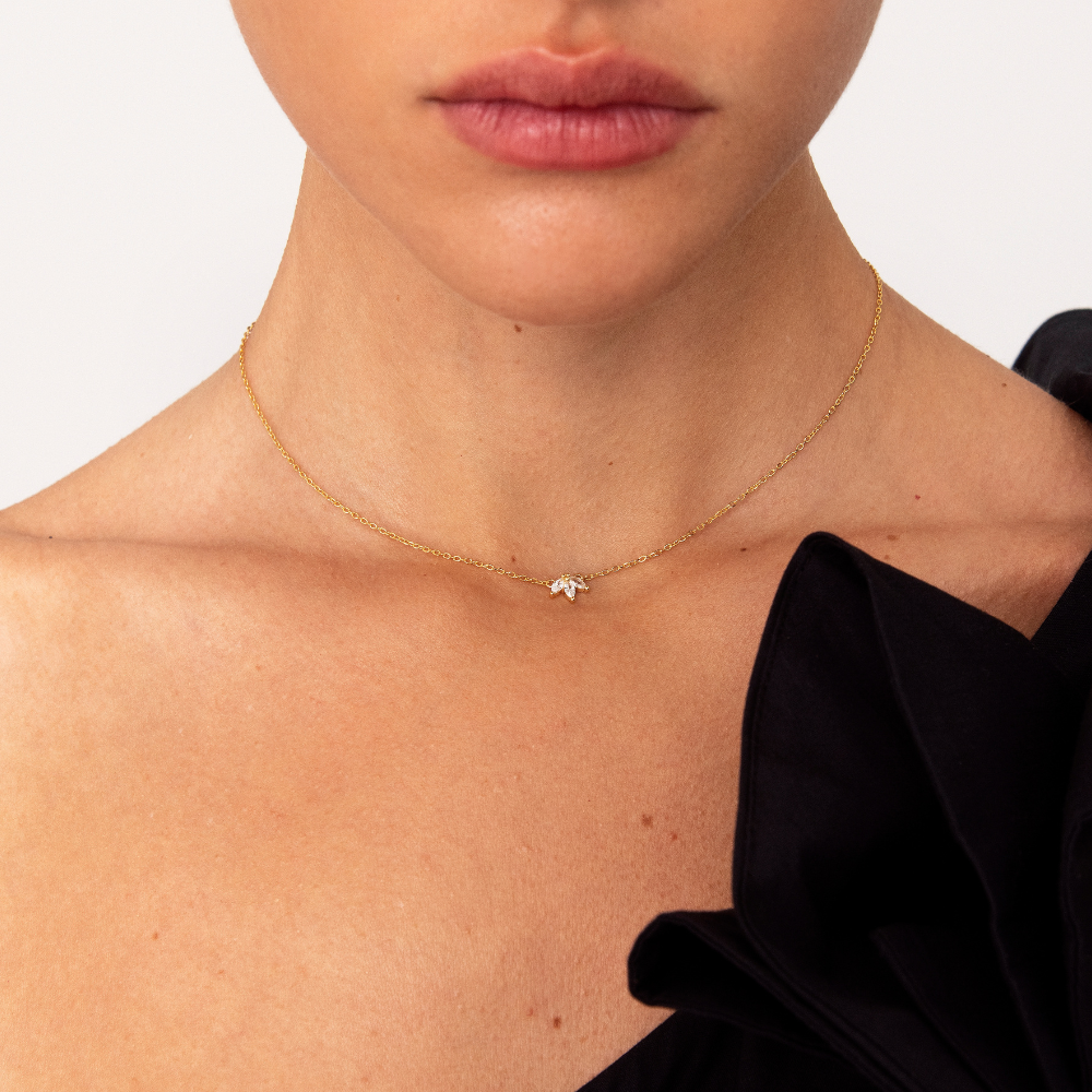 El collar Almez de estilo minimalista , esta formado por una cadena fina y un charm en forma de flor que dará un punto de brillo a tus looks .