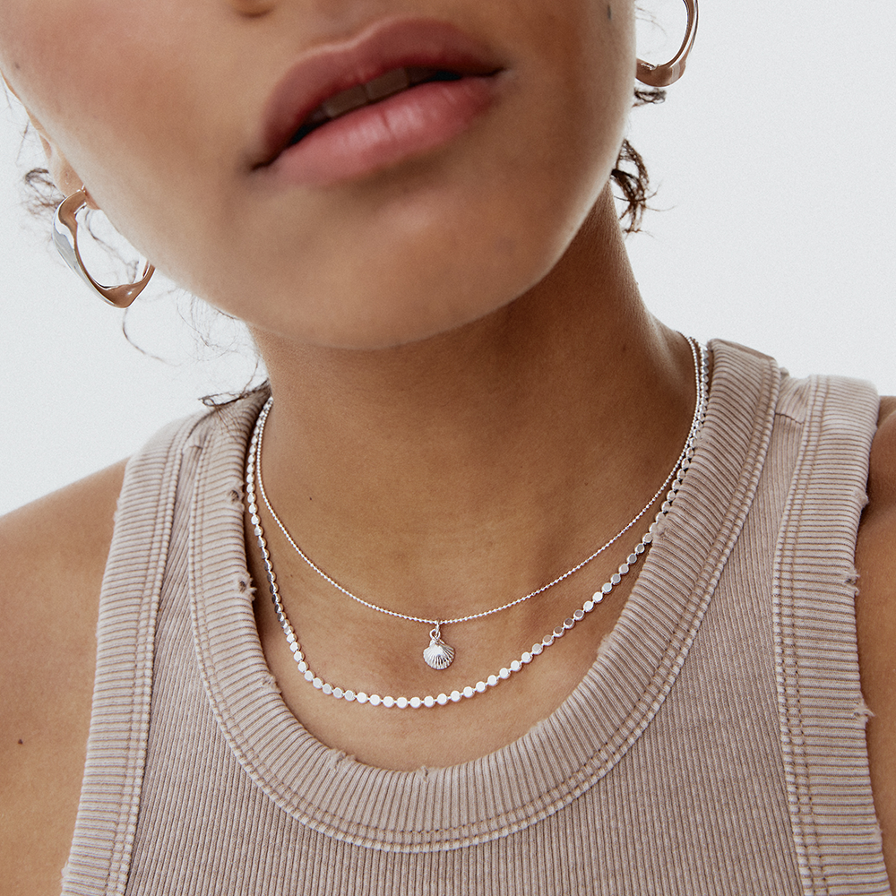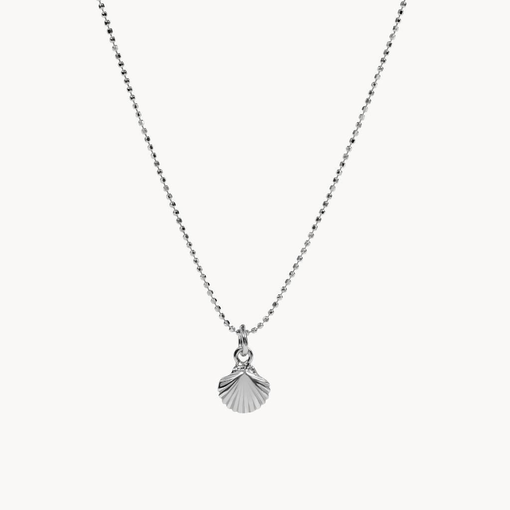 Consta de una cadena fina de bolitas con un colgante en forma de una pequeña concha de mar.