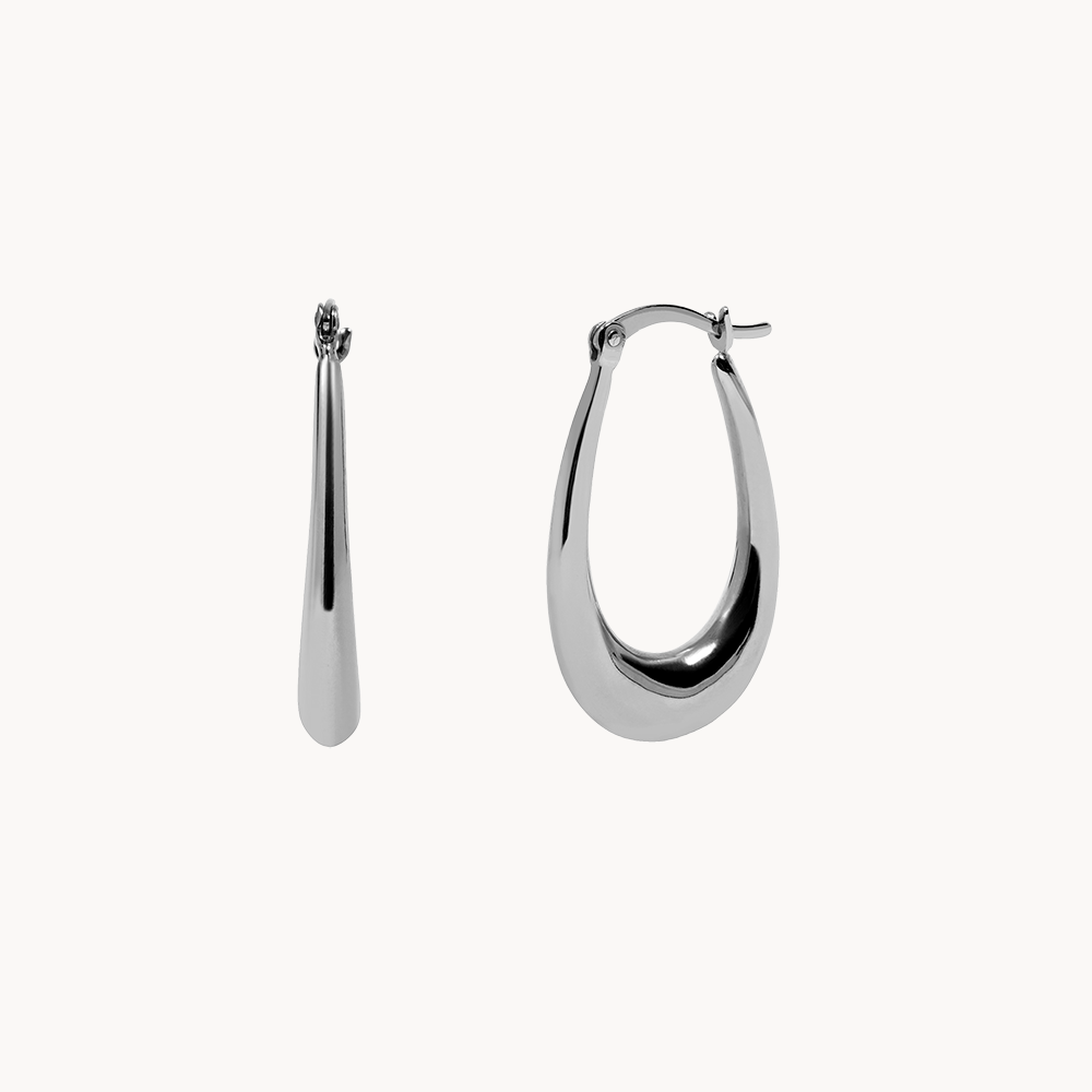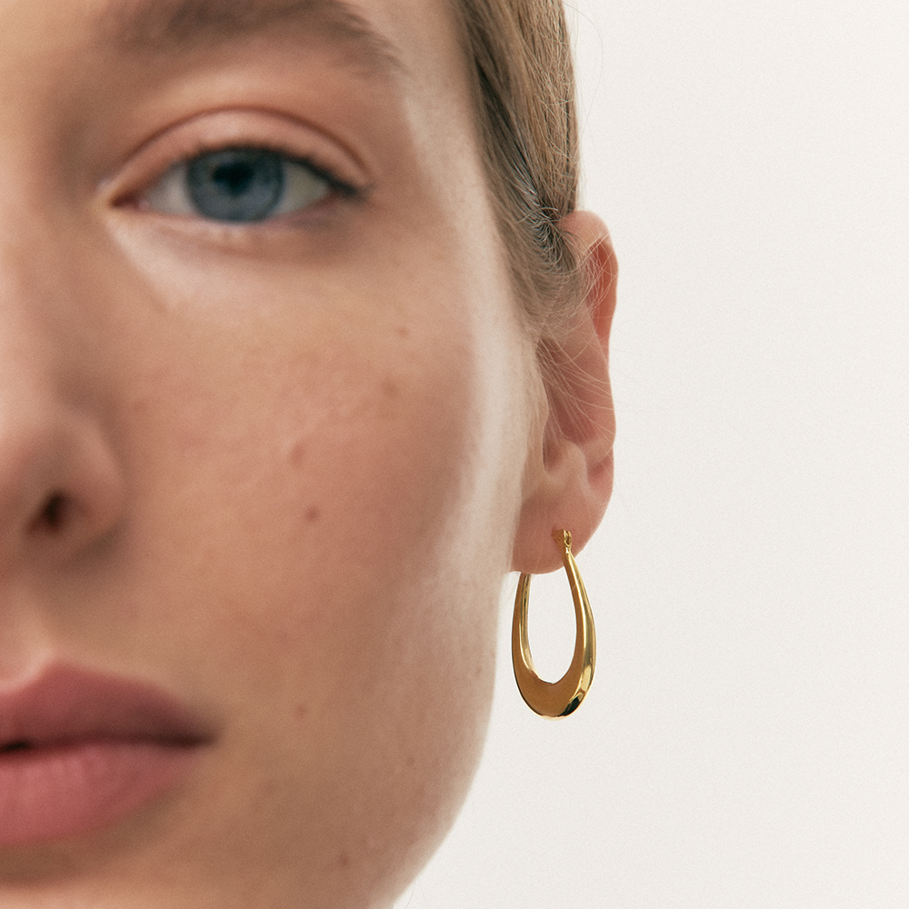 Ada son unos pendientes de aro básicos que presentan una forma alargada que los caracteriza. Estos pendientes son un esencial para tu joyero, una pieza perfecta para looks tanto sobrios como desenfadados.