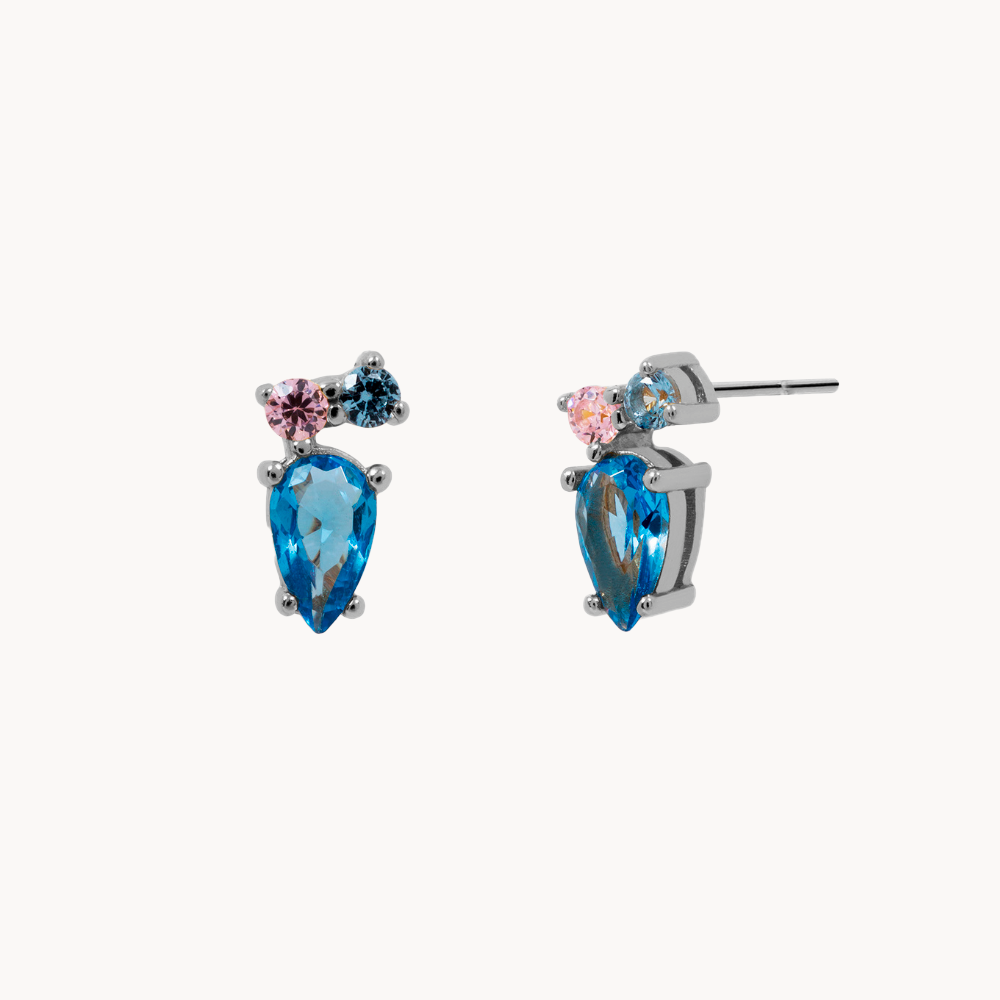 Blue Pear es un stud con tres circonitas en tono pastel. Su diseño con una llamativa circonita en el centro y otras dos secundarias, lo convierten en una joya tan elegante como sutil.