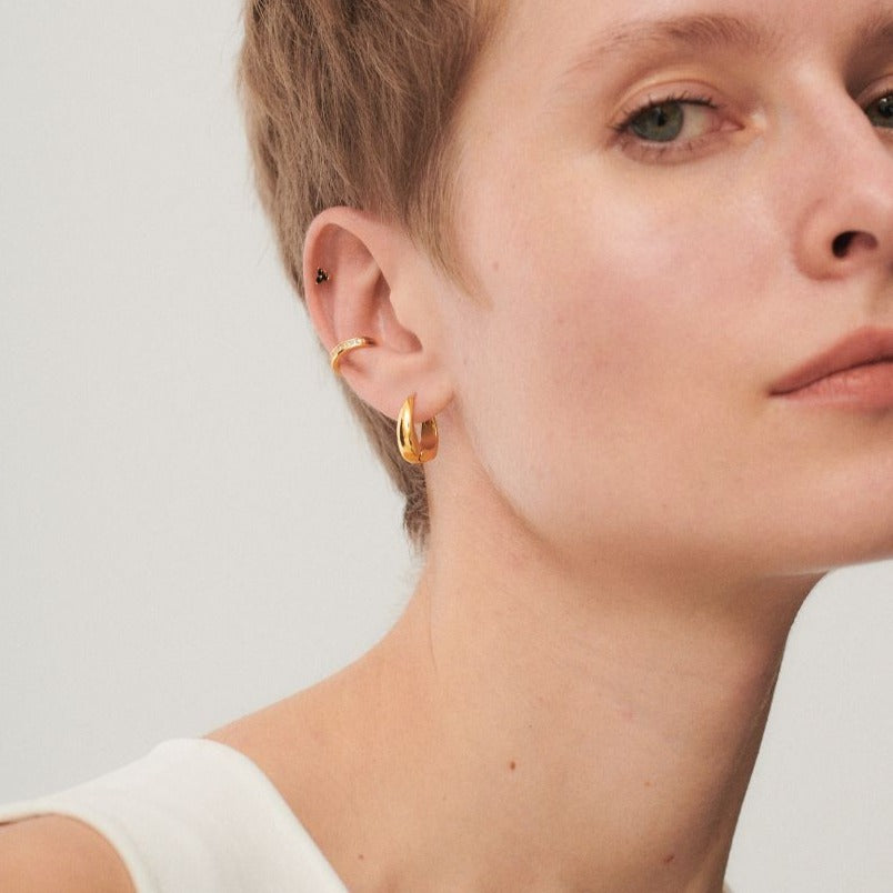 Huggie es un ear cuff con pequeñas circonitas brillantes, que le darán un toque muy elegante para combinar con cualquier look .