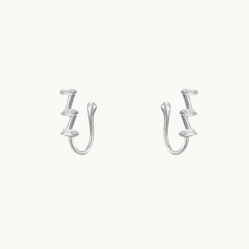 El pendientes Ear Cuff Stair tiene forma de escalera zig zag en dorado montadas con circonitas blancas.