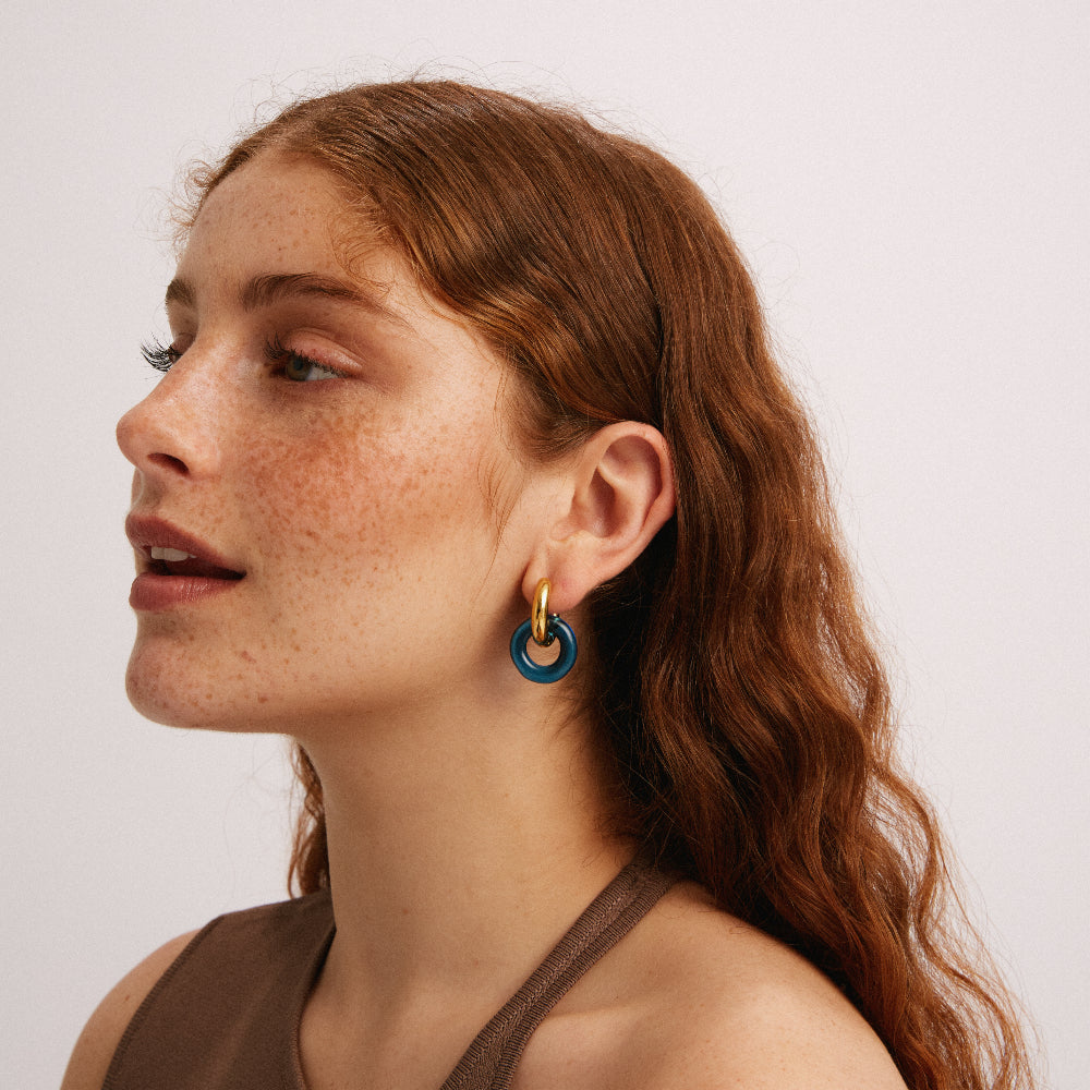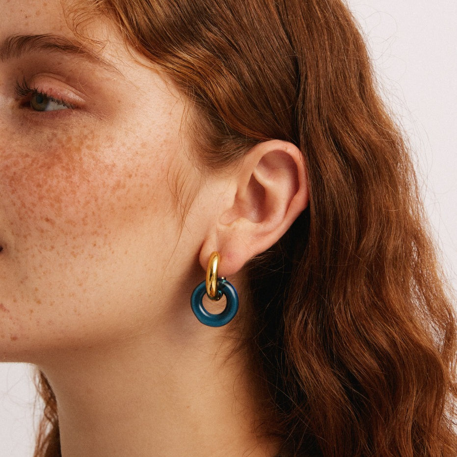 Nuestros pendientes Gina Plus One son la reinterpretación de nuestros pendientes Gina, agregándoles un toque especial de color.