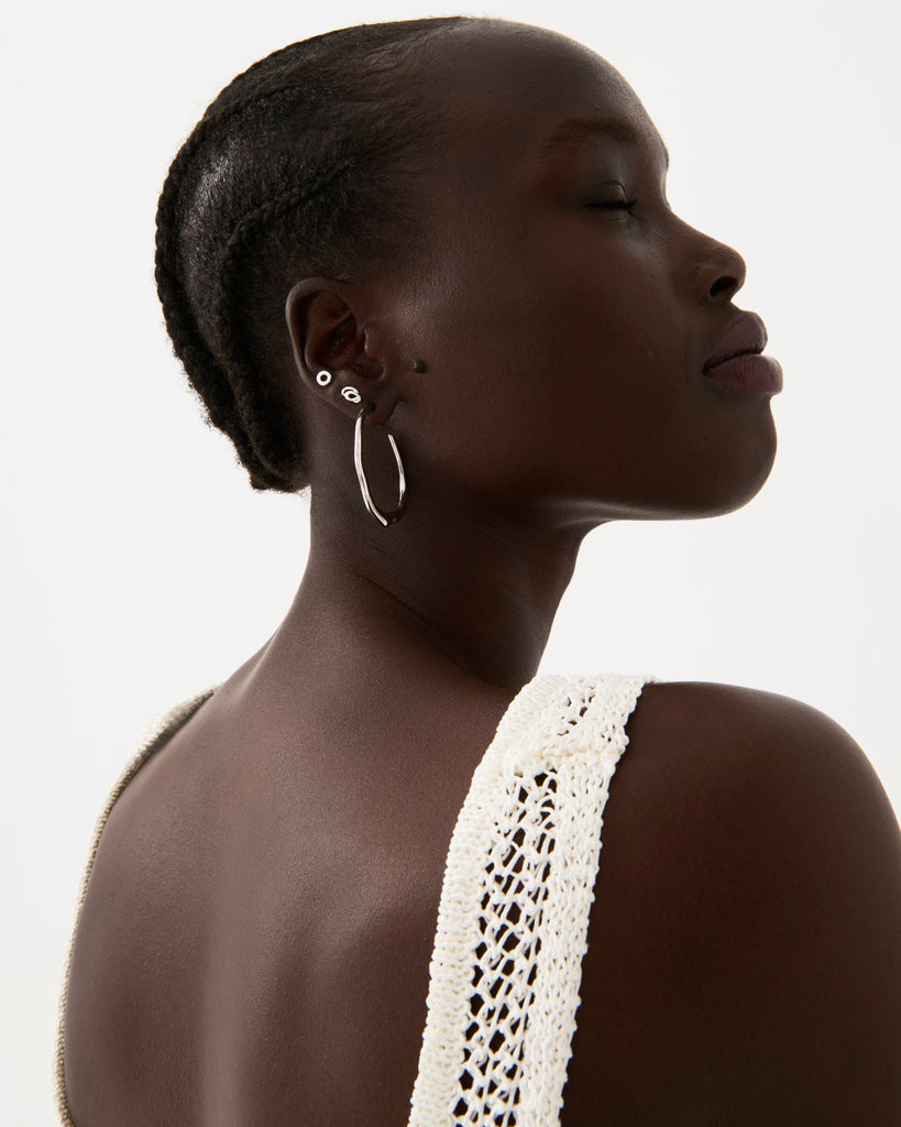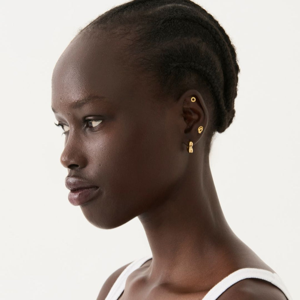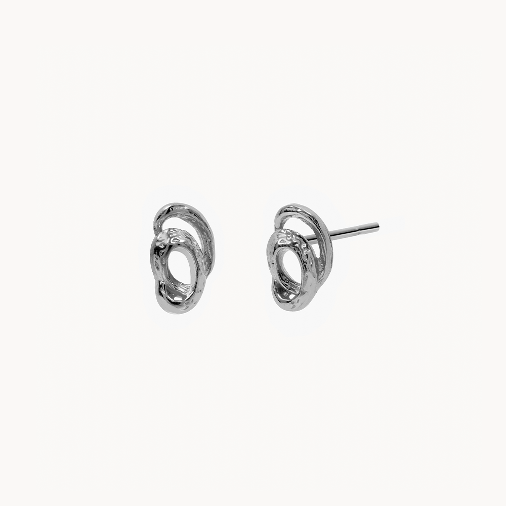 Orbit es un pendiente circular doble y entrelazado de textura orgánica y martillada ,un stud original que lo hace único y muy en tendencia para tu segundo agujero .