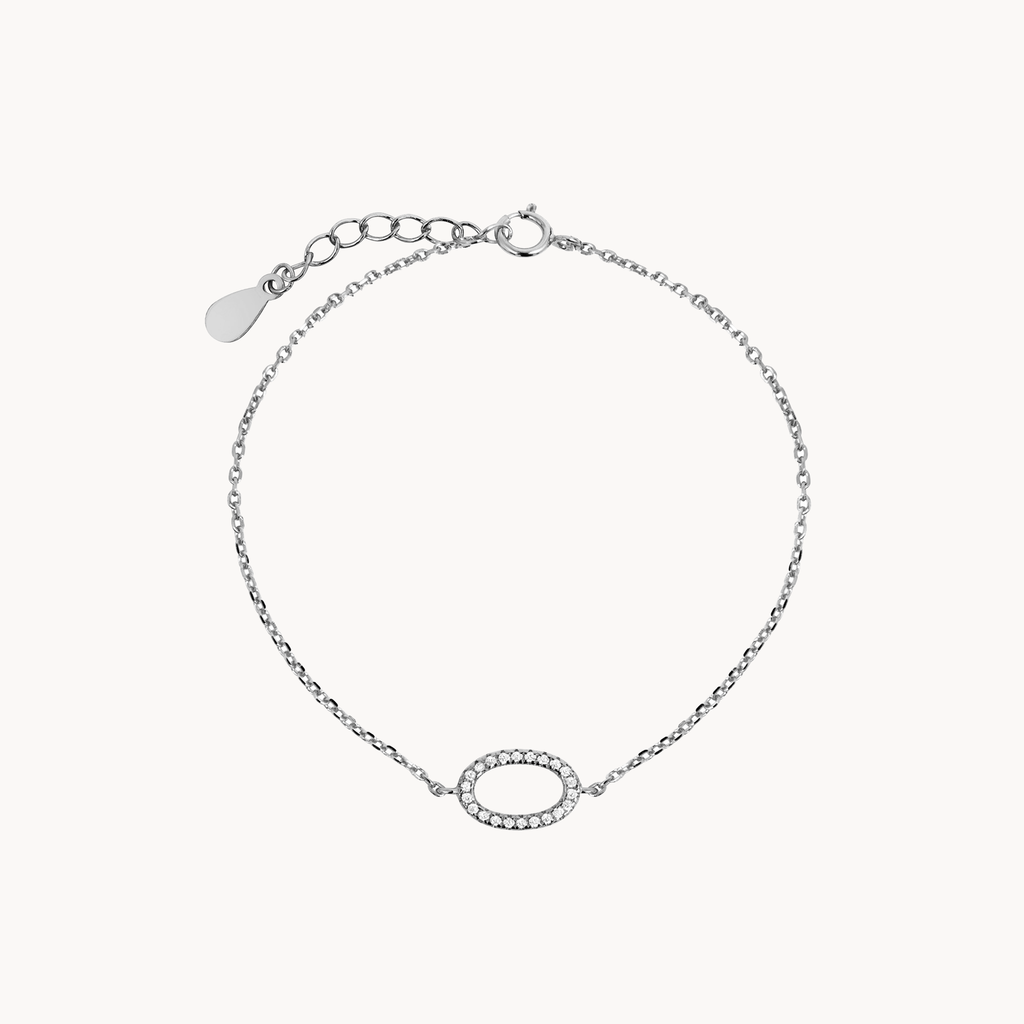 Whirl es una pulsera delicada y elegante, cuyo protagonista es un fino dije circular adornado con brillantes circonitas blancas que rodean su contorno.
