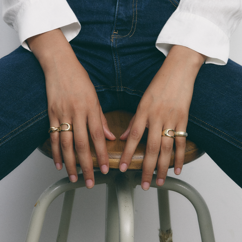 Una combinación de anillos que no te dejará indiferente. XL, lisos y con un único toque de color con la piedra negra. Un stack rings ideal para llevar en todo momento. Si lo prefieres, también puedes jugar con la disposición de los anillos en ambas manos.
