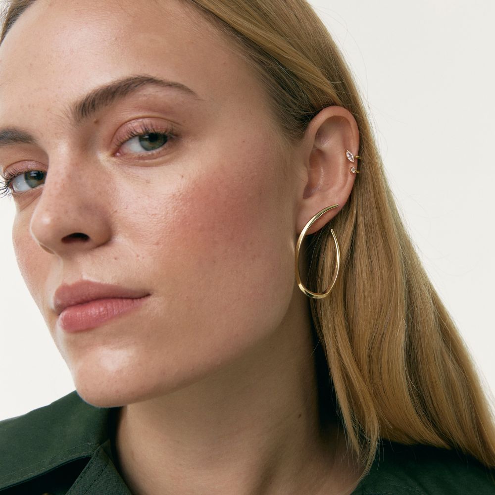 Los pendientes Olena pertenecen a la colección FLUIDITÉ, de formas fluidas y curvas orgánicas que reflejan la elegancia natural de la vida en movimiento.