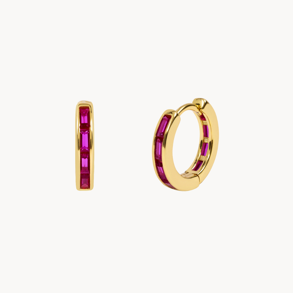 Colorful Ela son unos finos aros con pequeñas circonitas de color tipo baguette en ambas caras.