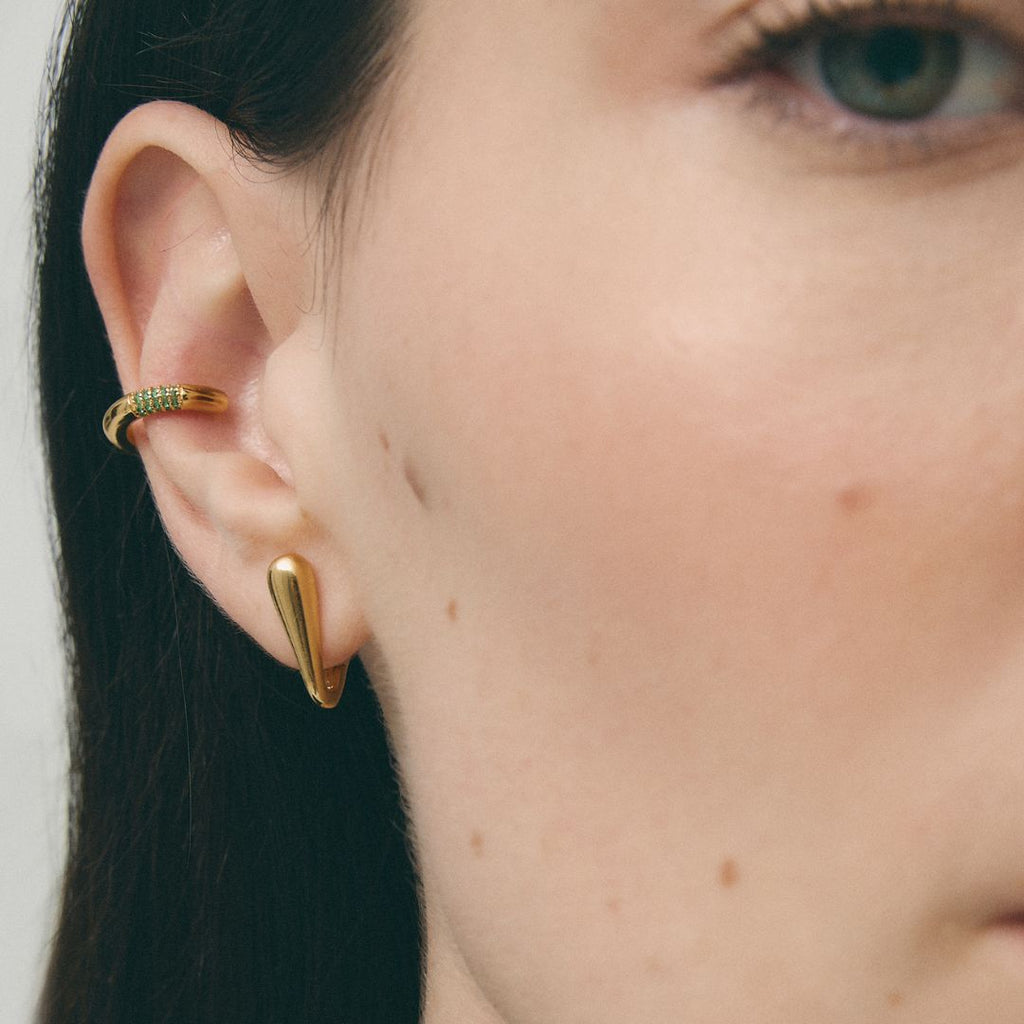 Se trata de una pieza innovadora que redefine la forma de llevar joyería, adaptándose al contorno del lóbulo sin necesidad de perforación.