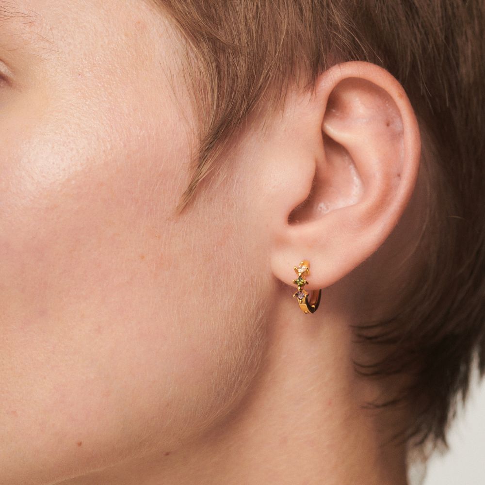 La elegante tonalidad de las circonitas y su luz, harán de tus aros Loana Rhombus, los preferidos de esta temporada.