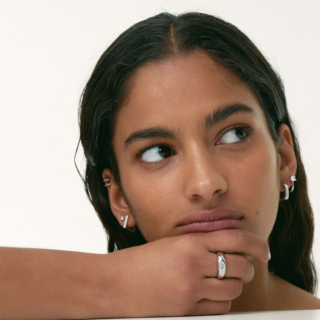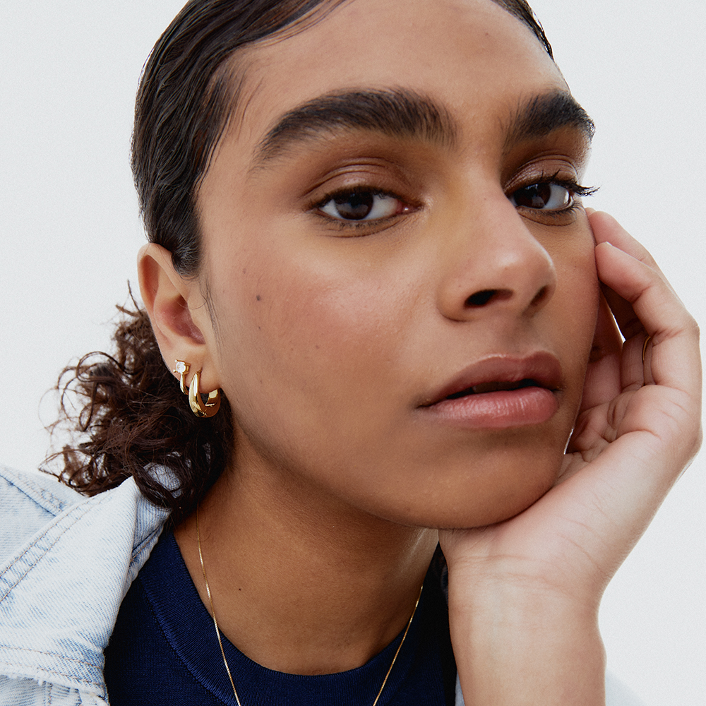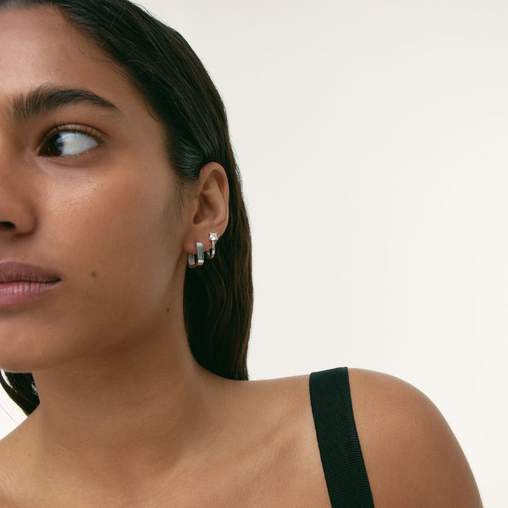Lleva tus pendientes Main en el agujero principal, combinándolos con studs tipo nuestros Malva Nilo o el pendiente Ling.