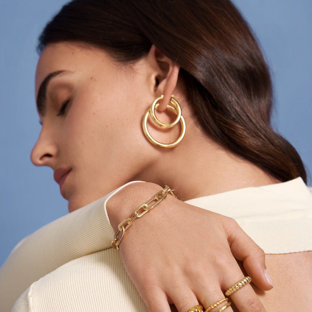 Pueden combinarse con otros aros grande dorados para conseguir un toque más moderno.