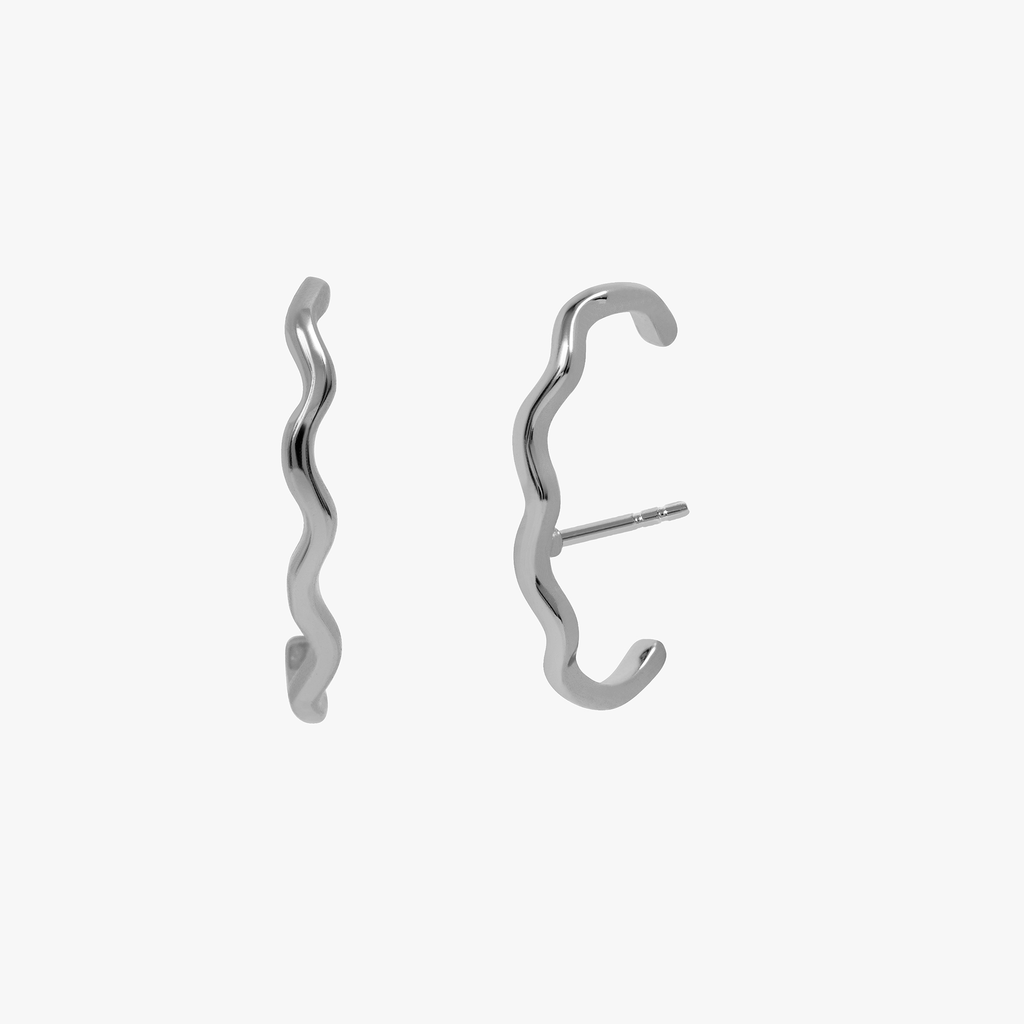 Organic Hook es un pendiente curvado de estilo minimalista con superficie en relieve y textura orgánica .