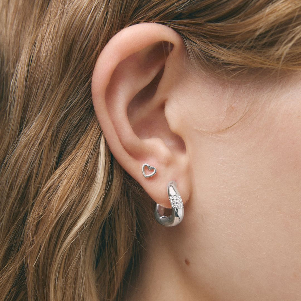 Outline Hearts son unos pendientes con cierre de mariposa a presión, con la silueta de un corazón.