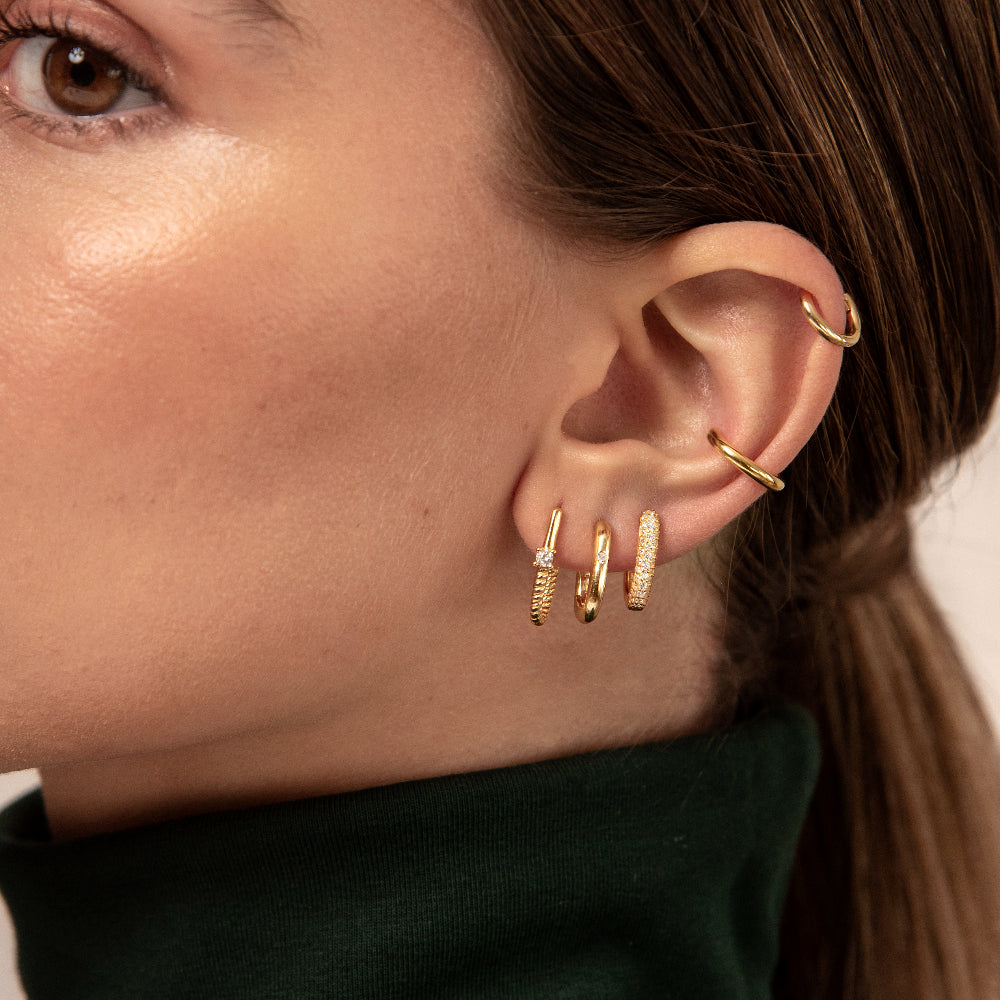 Combínalo con pendientes ESSENTIAL y SWEET GOLD HOOPS