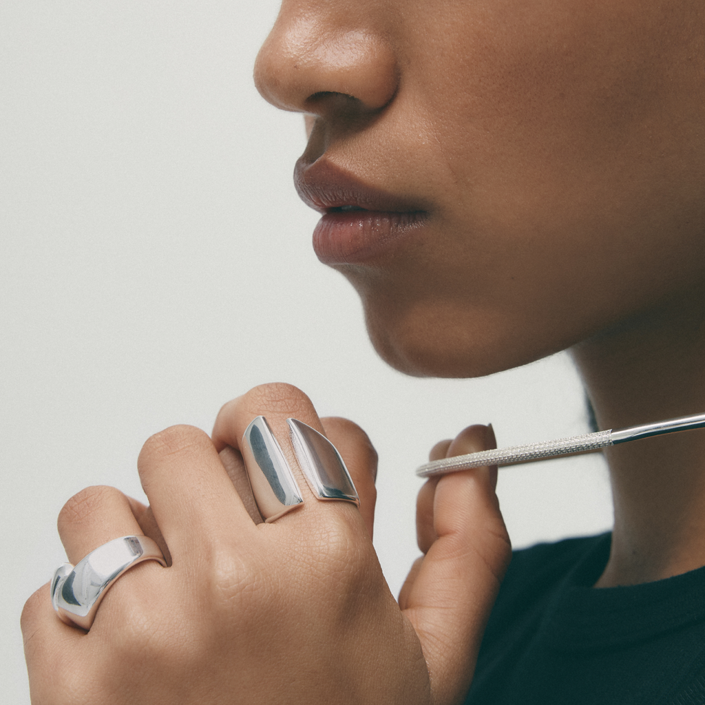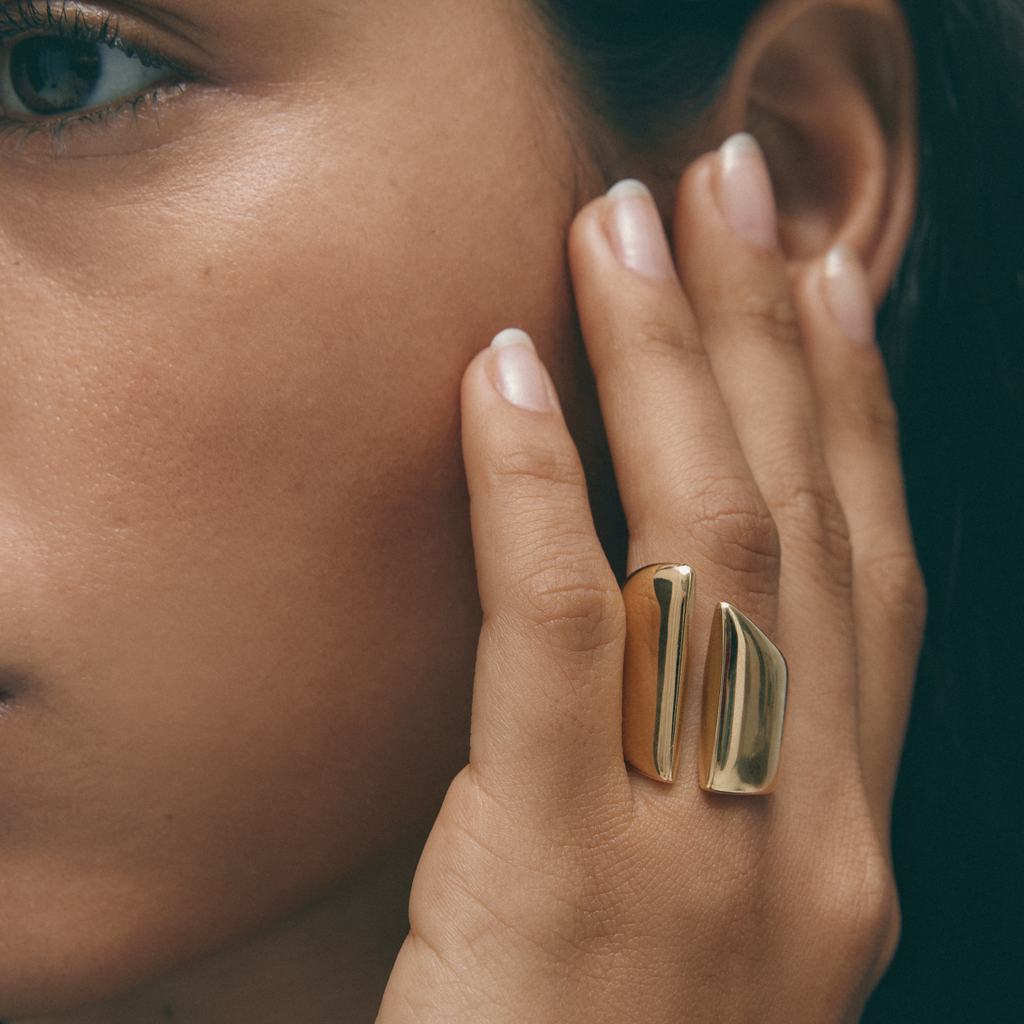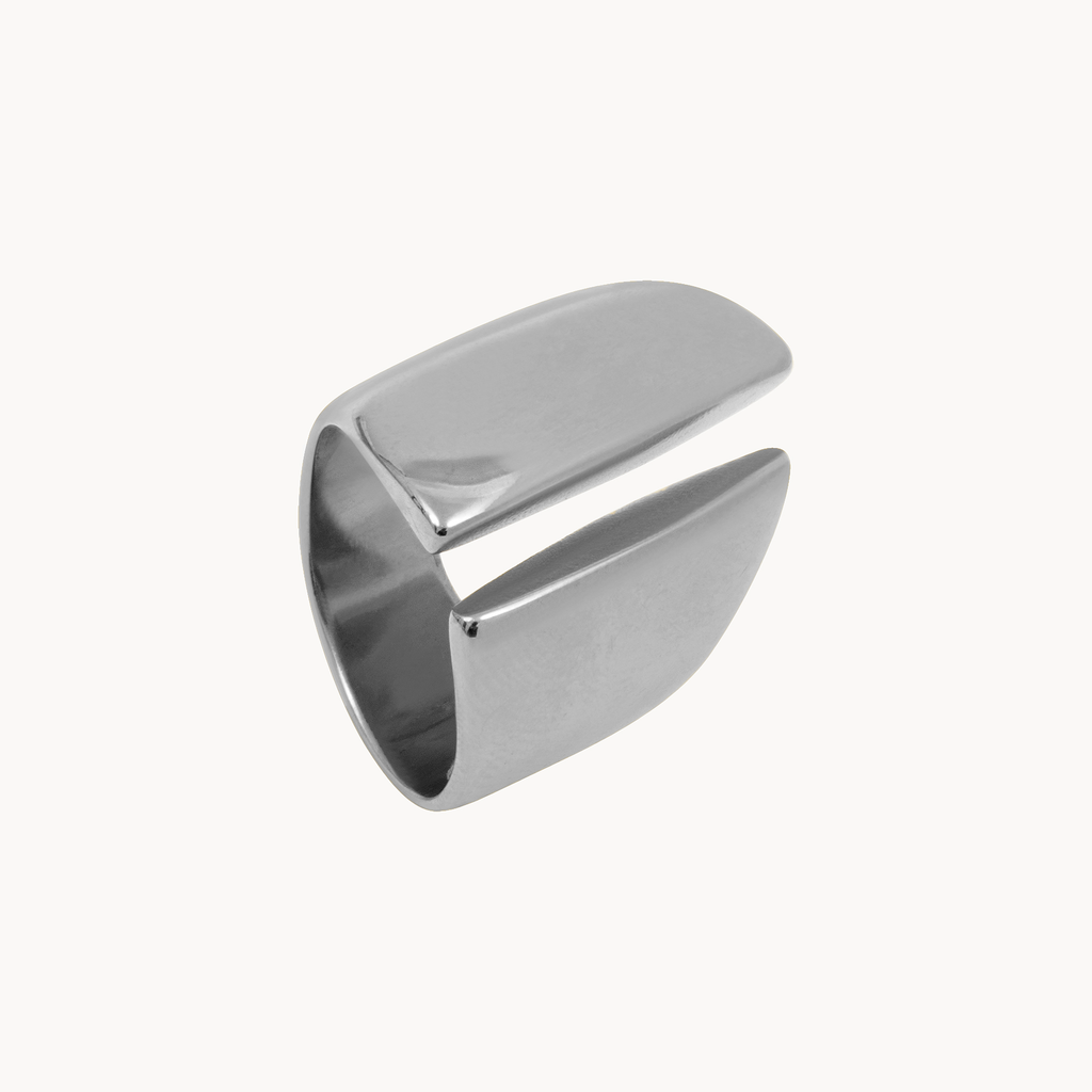 Con su forma alargada y bold, este anillo XL realza tu mano y estiliza tus dedos. Perfecto para cualquier ocasión, es un must de esta temporada.