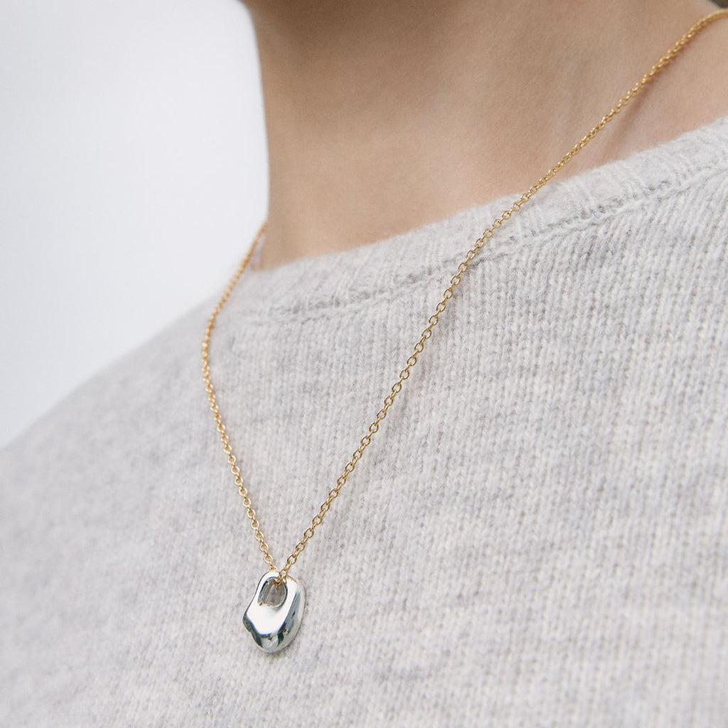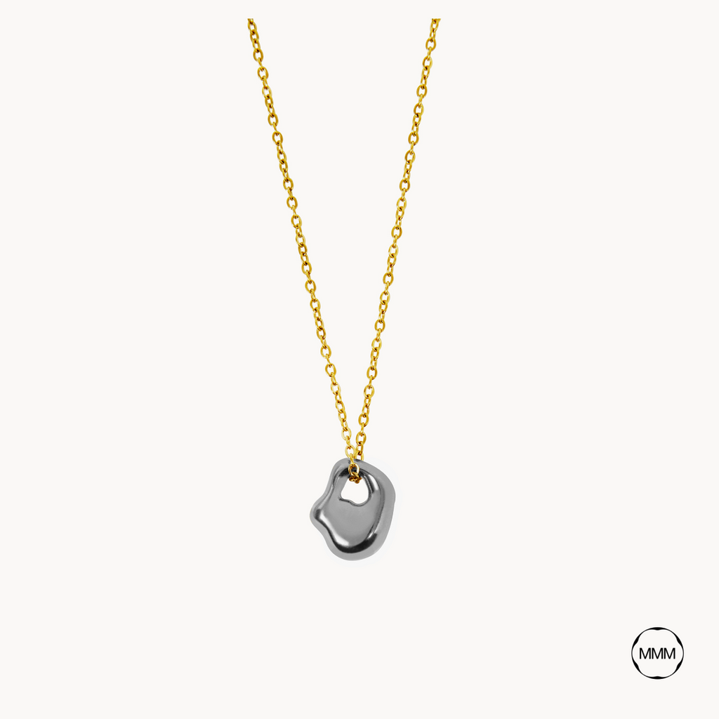 Absoluto Mix es un collar de medida ajustable con un charm en forma orgánica como protagonista total de la joya.