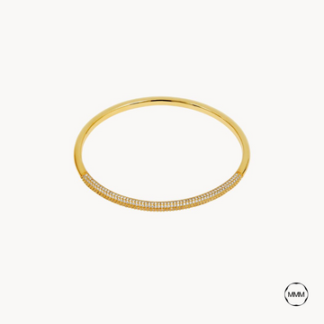 Aura is a rigid, oval-shaped slave bracelet covered in pavé zircons on half of its diameter.