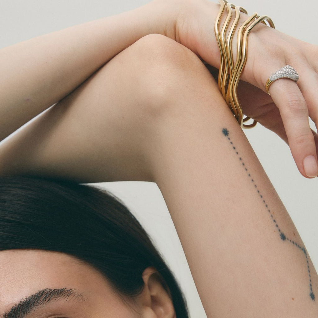 925 Silver pieces with 18K Gold plating are, by default, more delicate and may lose the gold color over time. The plating may fade for different reasons: chemicals used for skin care, the level of perspiration or the natural pH of the skin. We recommend not wearing them under water and avoiding perfumes and creams directly on the jewelry. On the contrary, waterproof pieces are resistant to fresh water, that is, we recommend not submerging them in the sea or in waters with chemicals.
