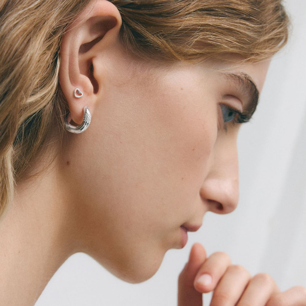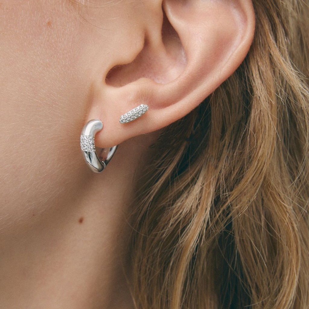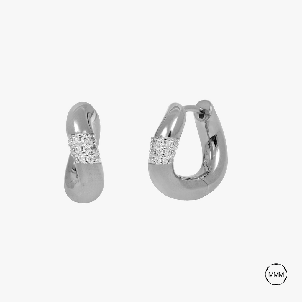 The Darmha hoops feature a round, twisted shape, with zircons set into the front to create a point of light.