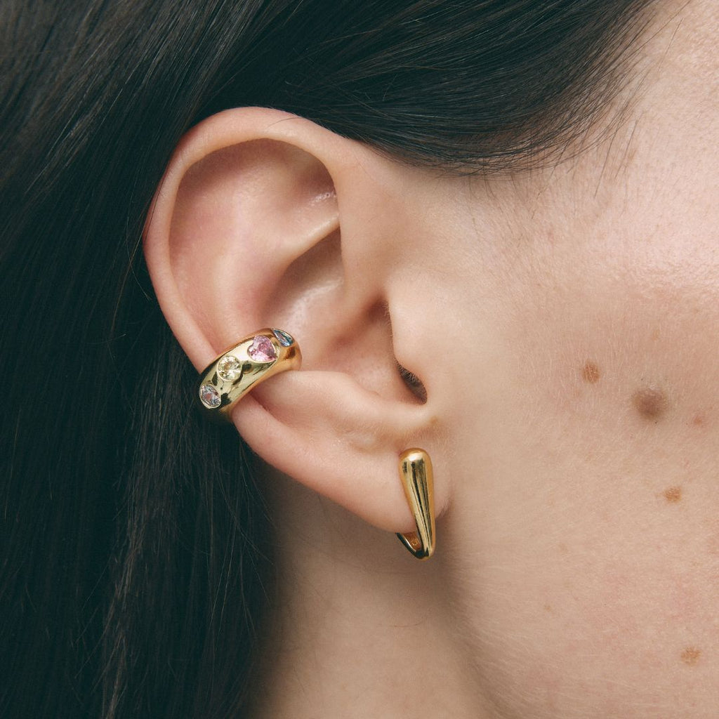 Solstice are versatile triangular earrings with defined, rounded edges.