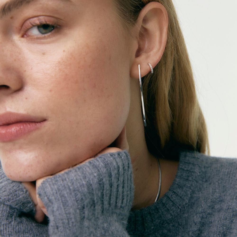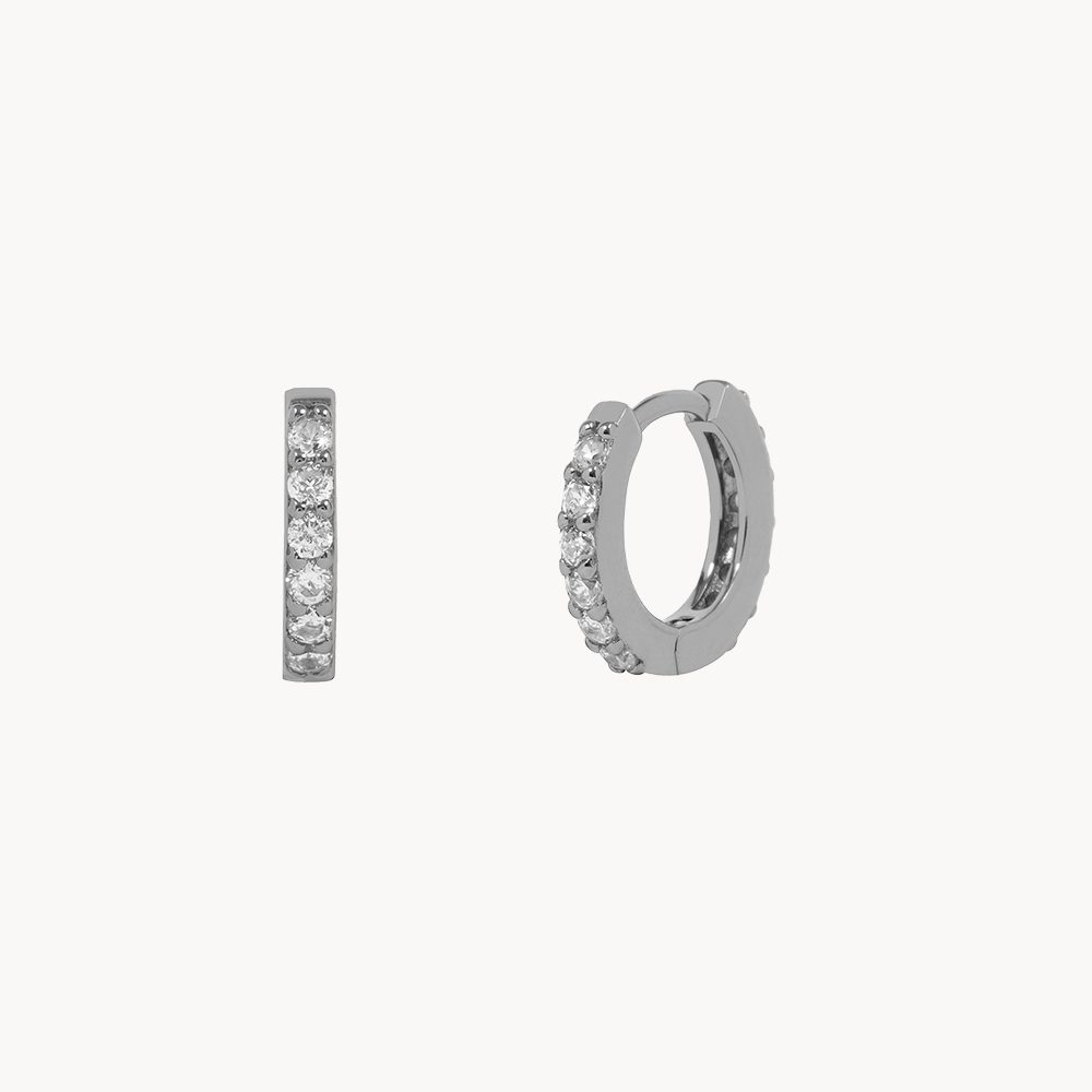 Swift are hoop earrings with sparkling zirconia set around the entire hoop. Ideal to wear as main earrings, secondary earrings and as a piercing.