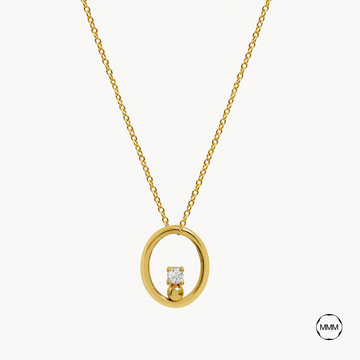 This new vintage-style necklace combines a delicate fine chain with an oval pendant. In the center, a 3mm white zirconia and a 3mm bead create a subtle and elegant piece.