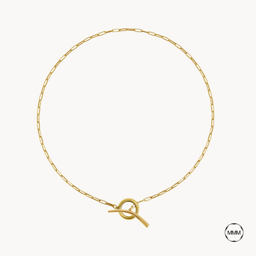 Boyfriend is a necklace, a choker made of rectangular link chain with a T-shaped clasp.