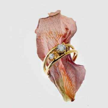 This vintage-style double ring stands out for its two open-set zircons in different settings, providing a unique and sophisticated touch.
