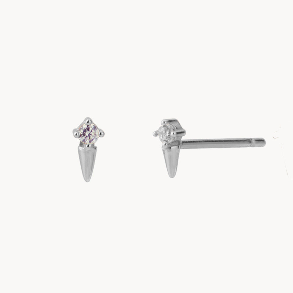 Sarah are mini earrings in the shape of a small cone and a white zirconia.