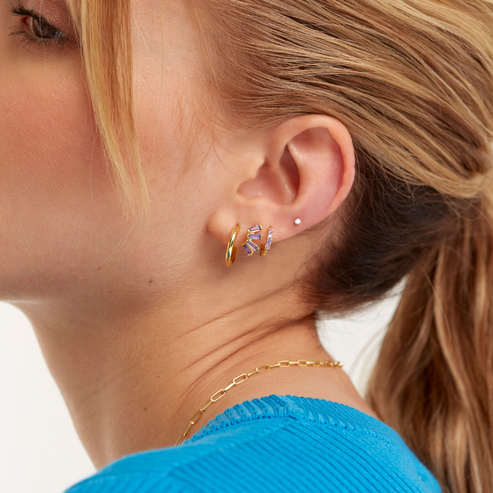 All our earrings are made with 925 Sterling Silver, this means that they comply with the purity law, with 92.5% silver, and are plated with 18k gold.