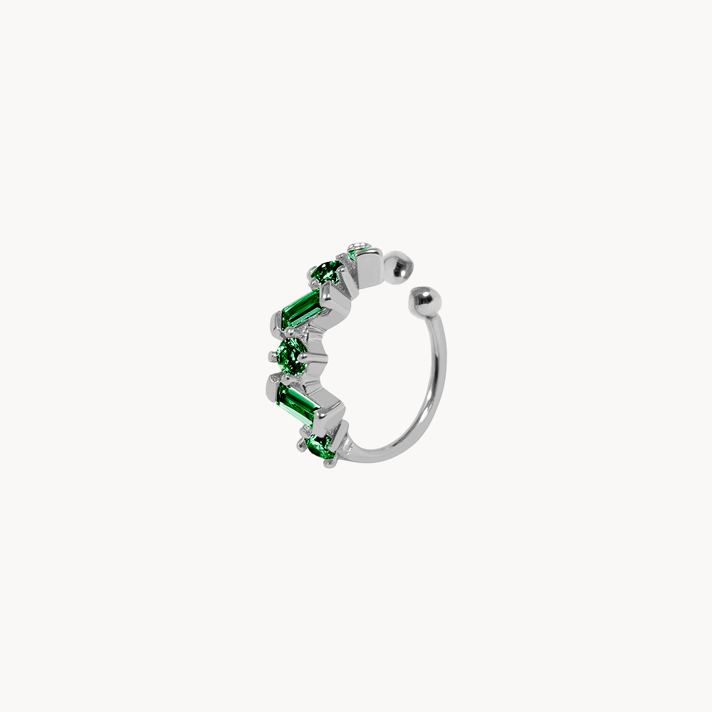 Green Lua is a minimalist ear cuff that alternates green baguette-shaped zirconia and round cubic zirconia. It is ideal for giving a modern and fresh touch to your looks.