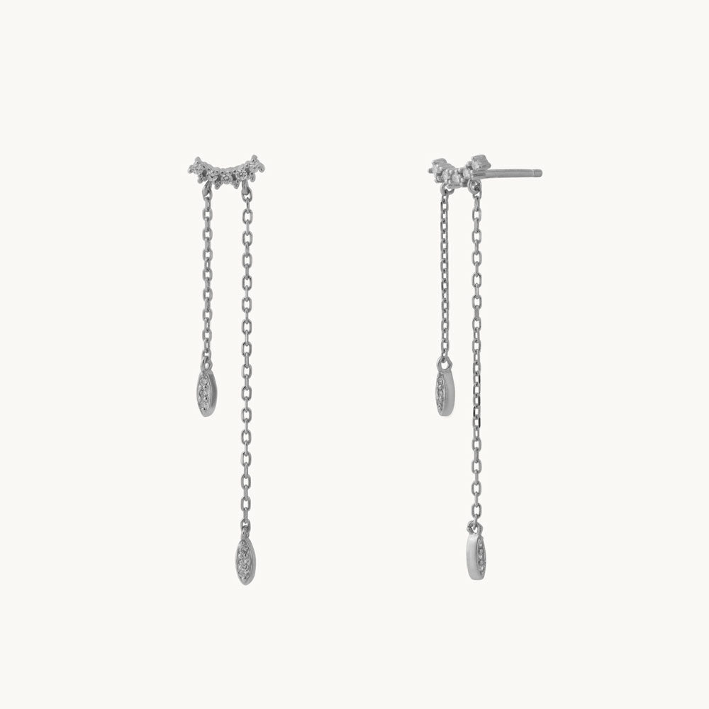 Adela are earrings with two semicircles of zircons and a double chain finished with two zircon pendants.